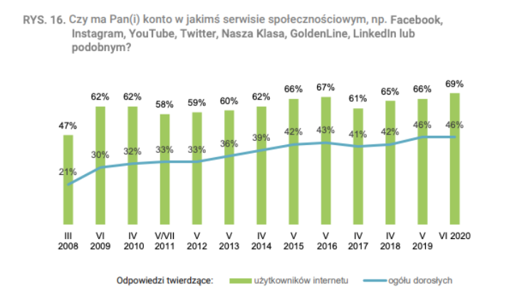 Źródło: Komunikat CBOS nr 85/2020, badania “Korzystanie z internetu”