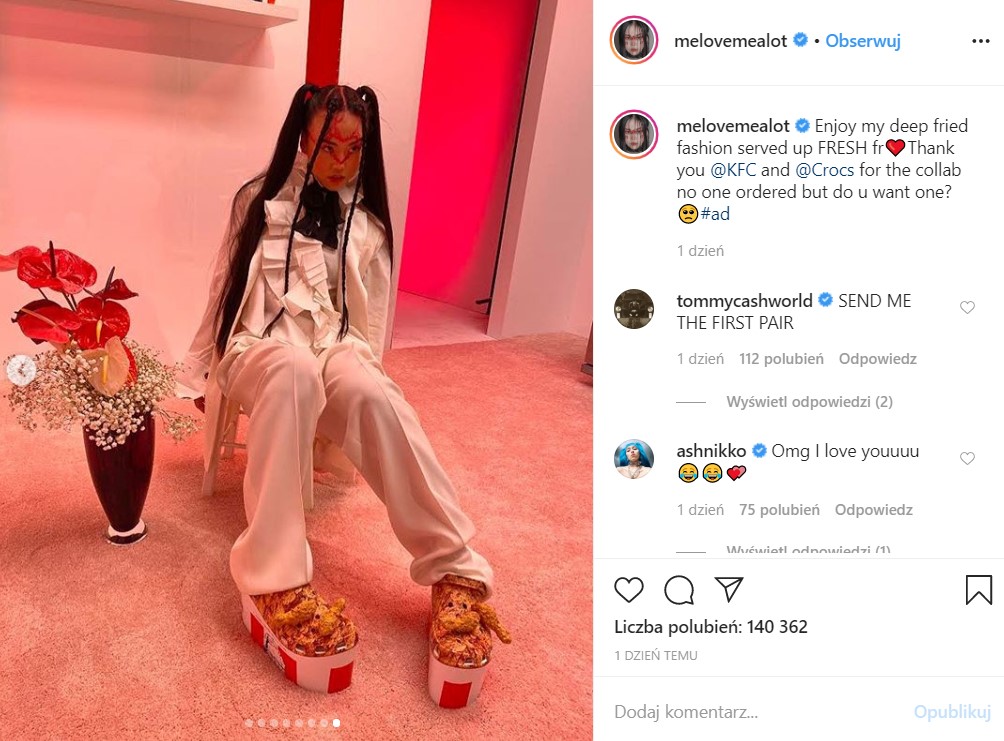 Premiera niekonwencjonalnych butów odbyła się podczas niedawnego nowojorskiego tygodnia mody. „Twarzą” chodaków KFC x Crocs została koreańska artystka i modelka MLMA.