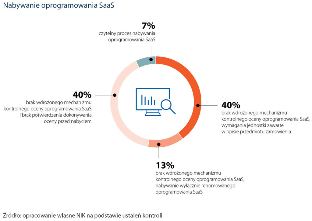 Oprogramowanie typu SaaS (software as a service), całkowicie przenoszące odpowiedzialność za instalację, zarządzanie i aktualizację na dostawcę, tylko w 40% było nabywane na warunkach umożliwiających weryfikację, czy spełnia ono wymogi i potrzeby danej jednostki. Nie zawsze też sprawdzano wiarygodność dostawców.