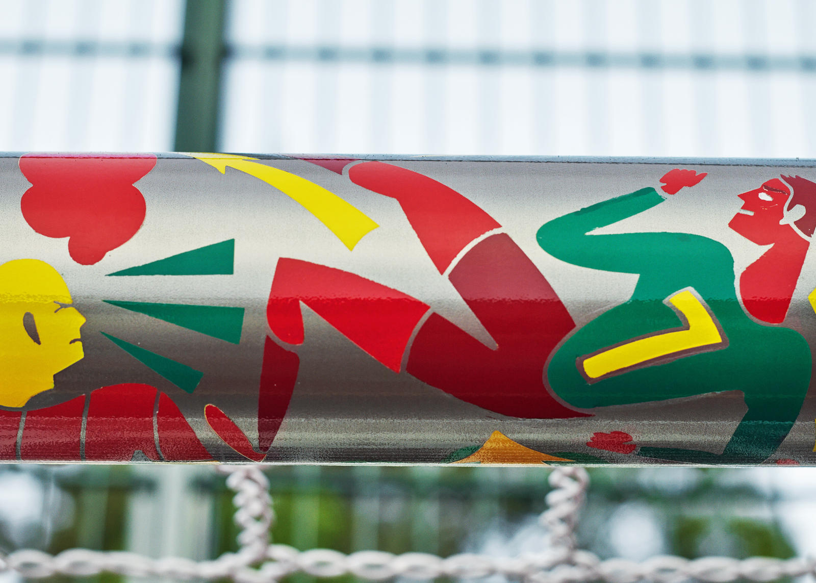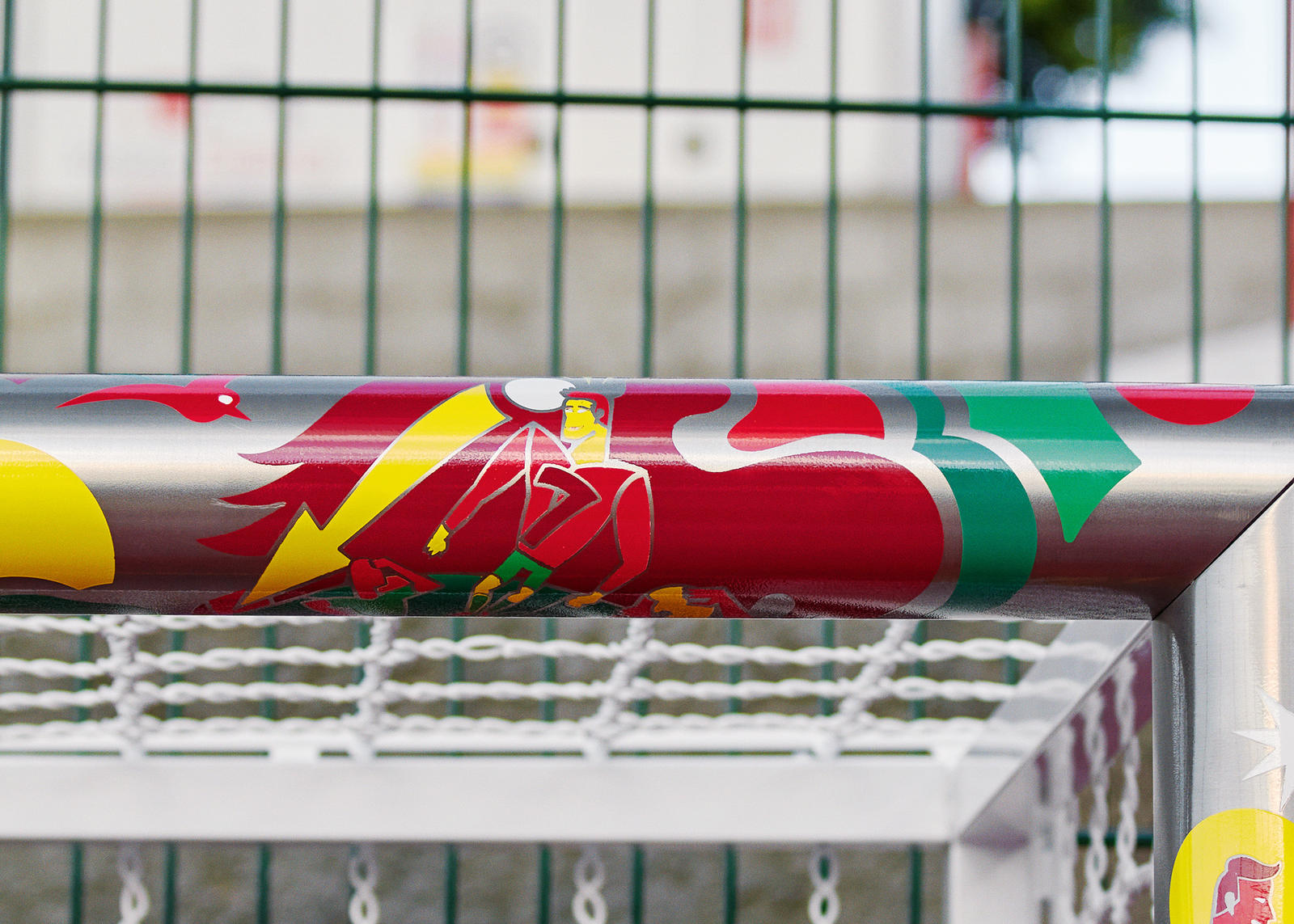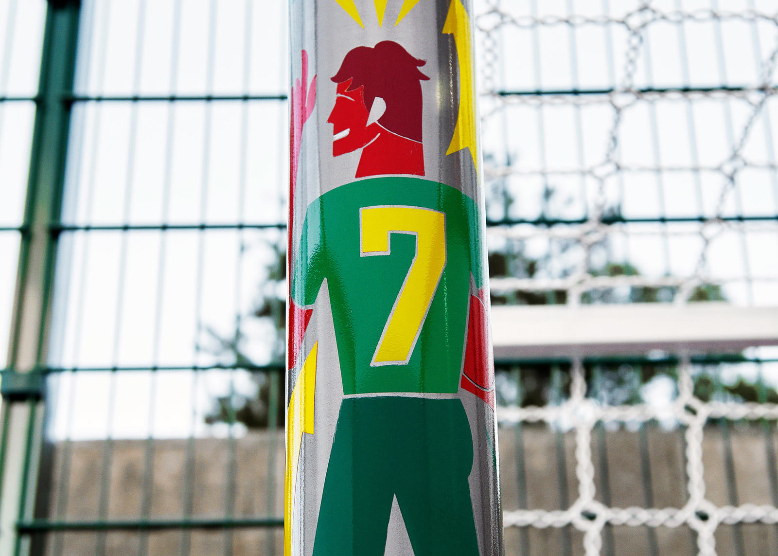 Boisko zostało zaprojektowane przez portugalskiego artystę AkaCorleone. Miejsce, dzięki unikalnym motywom, nawiązuje do kariery legendarnego napastnika. Na środku boiska nie mogło zabraknąć znamiennego symbolu CR 7, a dodatkowo, słupki bramek zostały ozdobione motywami symbolizującymi początki młodego Ronaldo, grającego na portugalskim boisku.