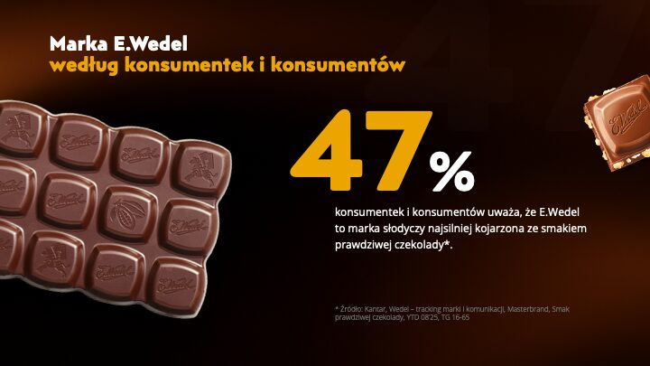 - Wartość skojarzeń marki Wedel także została uwzględniona: według badań Kantar, 47% konsumentów wskazuje, że Wedel kojarzy im się ze „smakiem prawdziwej czekolady”.