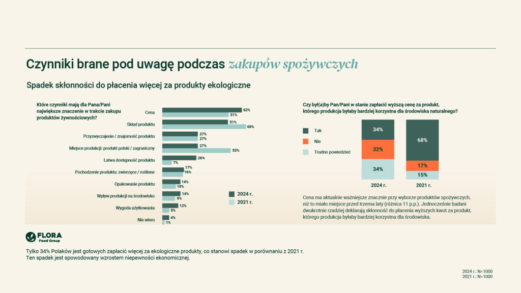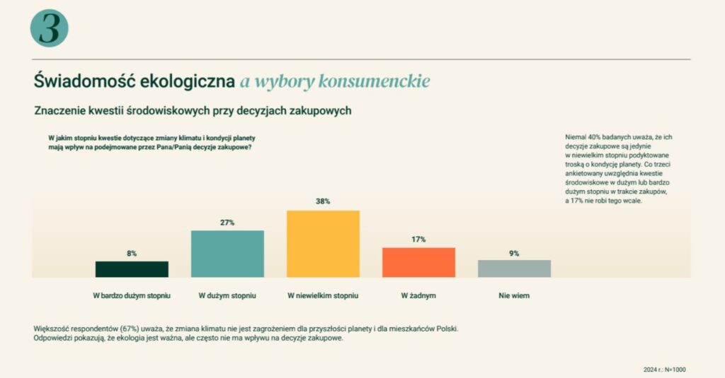 Zanotowano też znaczący, bo aż dwukrotny, spadek zainteresowania respondentów zapłaceniem więcej za produkty przyjazne środowisku (34% w 2024 r. vs. 68% w 2021 roku).