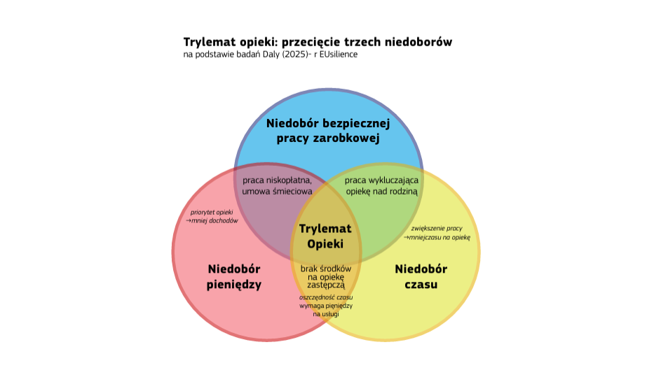 Raport zawiera też wyniki badań jakościowych, ukazujących codzienne strategie przetrwania osób ubogich. To obraz rodzin funkcjonujących w tzw. trylemacie opieki – między pracą, opieką i brakiem czasu.
