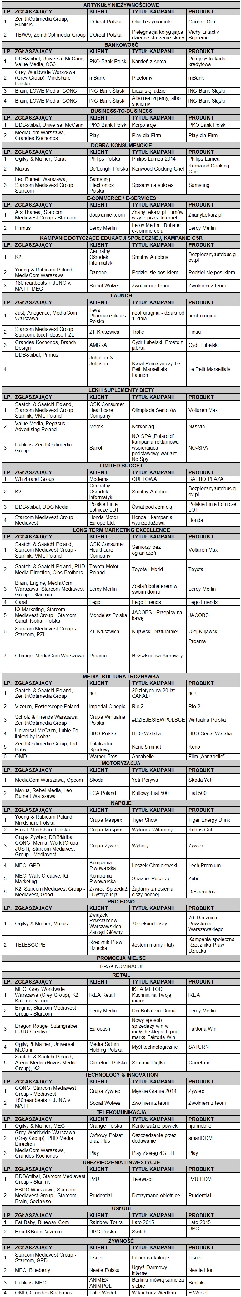 Na obu etapach głosowania jury musiało przemyśleć i ocenić prace przyznając punkty w 4 obszarach wymaganych do oceny efektywności kampanii: wyzwanie strategiczne i przyjęte cele, idea komunikacyjna, rozwinięcie idei w działania reklamowe oraz efekty komunikacji. Oglądano również prace kreatywne i przesłane przez zgłaszających filmy o kampanii.