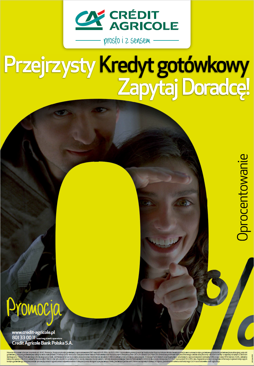 Oferta Przejrzystego Kredytu Gotówkowego dostępna jest w placówkach Credit Agricole oraz w serwisie telefonicznym banku.