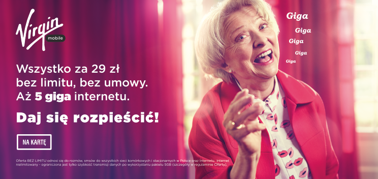 – Jesteśmy operatorem oferującym usługi prepaid, co nie oznacza, że powinniśmy kierować nasz produkt jedynie do młodszego konsumenta. Wszyscy doceniamy niezależność i lubimy korzystać z najwyższej jakości produktów, w dobrej cenie, niekoniecznie wiążąc się umowami. Ponadto Virgin Mobile to wyjątkowa marka, z którą warto być nie tylko dla samej oferty. Kryje się za nią pewien styl życia oraz sposób komunikacji, skierowany do szerszej grupy odbiorców. Poprzez szereg działań marketingowych, chcemy pokazać, że Virgin Mobile to operator dla wszystkich, ceniących sobie luz, szczerość i przynależność do fajnej społeczności – komentuje Grażyna Piotrowska-Oliwa, Prezes Virgin Mobile Polska.