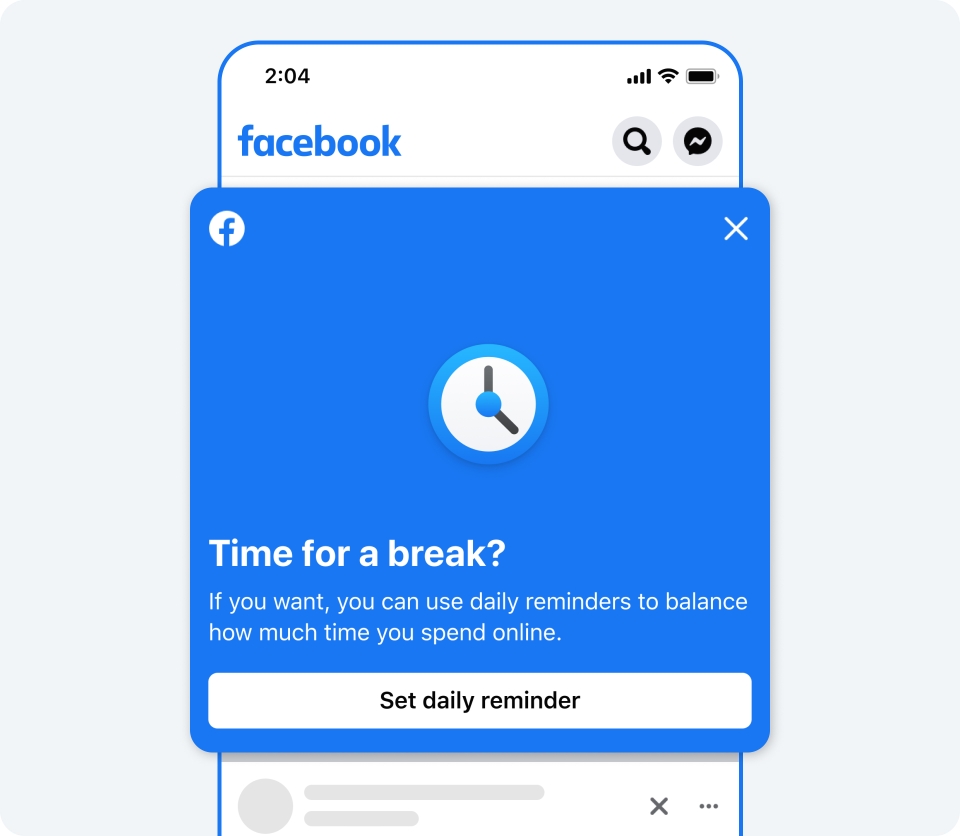 • Nowe wskazówki pomagające nastolatkom zarządzać czasem na Facebooku i Instagramie – po sukcesie Quite Mode i funkcji Take a Break na Instagramie funkcje są teraz również dostępne na Facebooku: