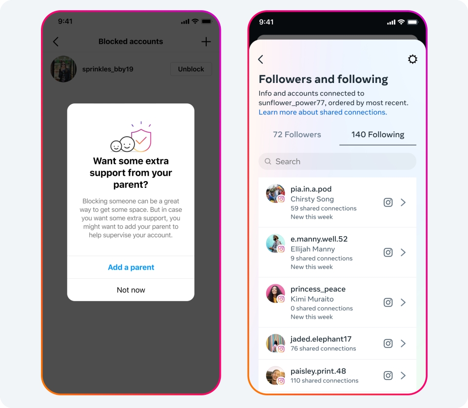 • Dodatkowe funkcje nadzoru rodzicielskiego na Instagramie – oprócz możliwości sprawdzenia, które konta obserwuje ich nastolatek i przez jakie konta jest obserwowany, rodzice będą teraz również w stanie zobaczyć, ile wspólnych znajomych nastolatek ma z danymi kontami.
