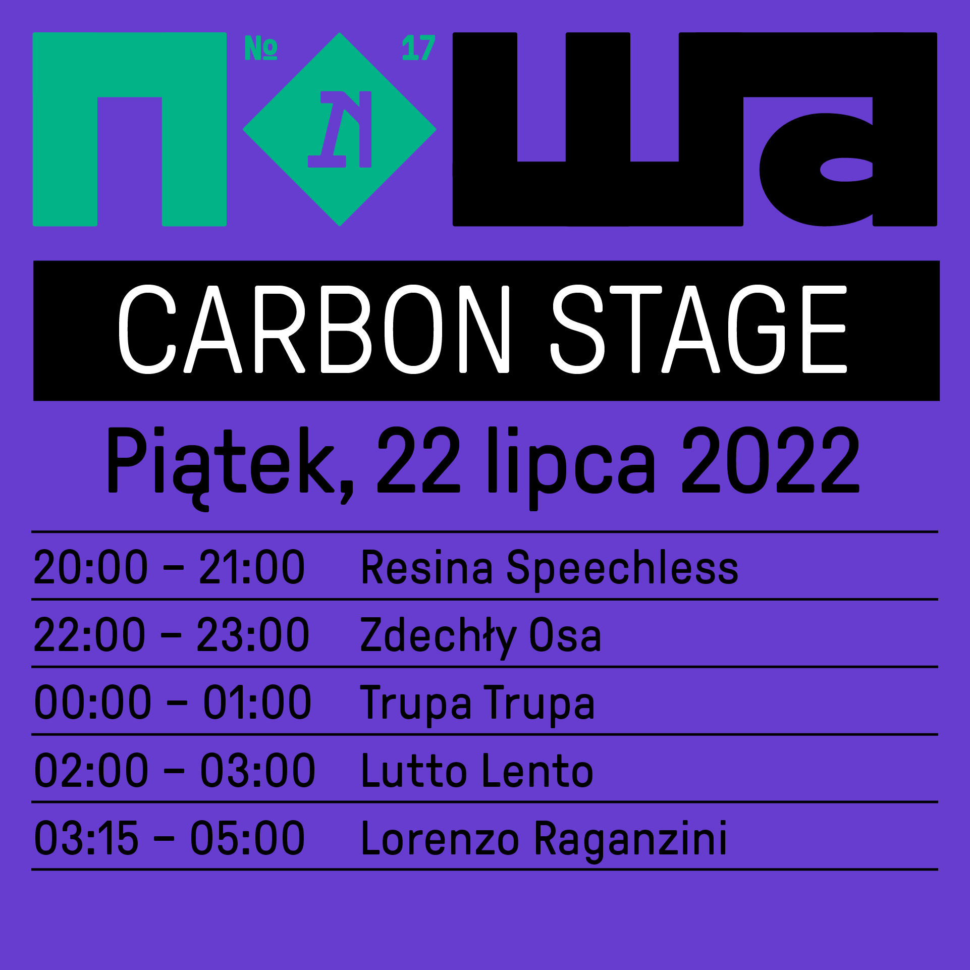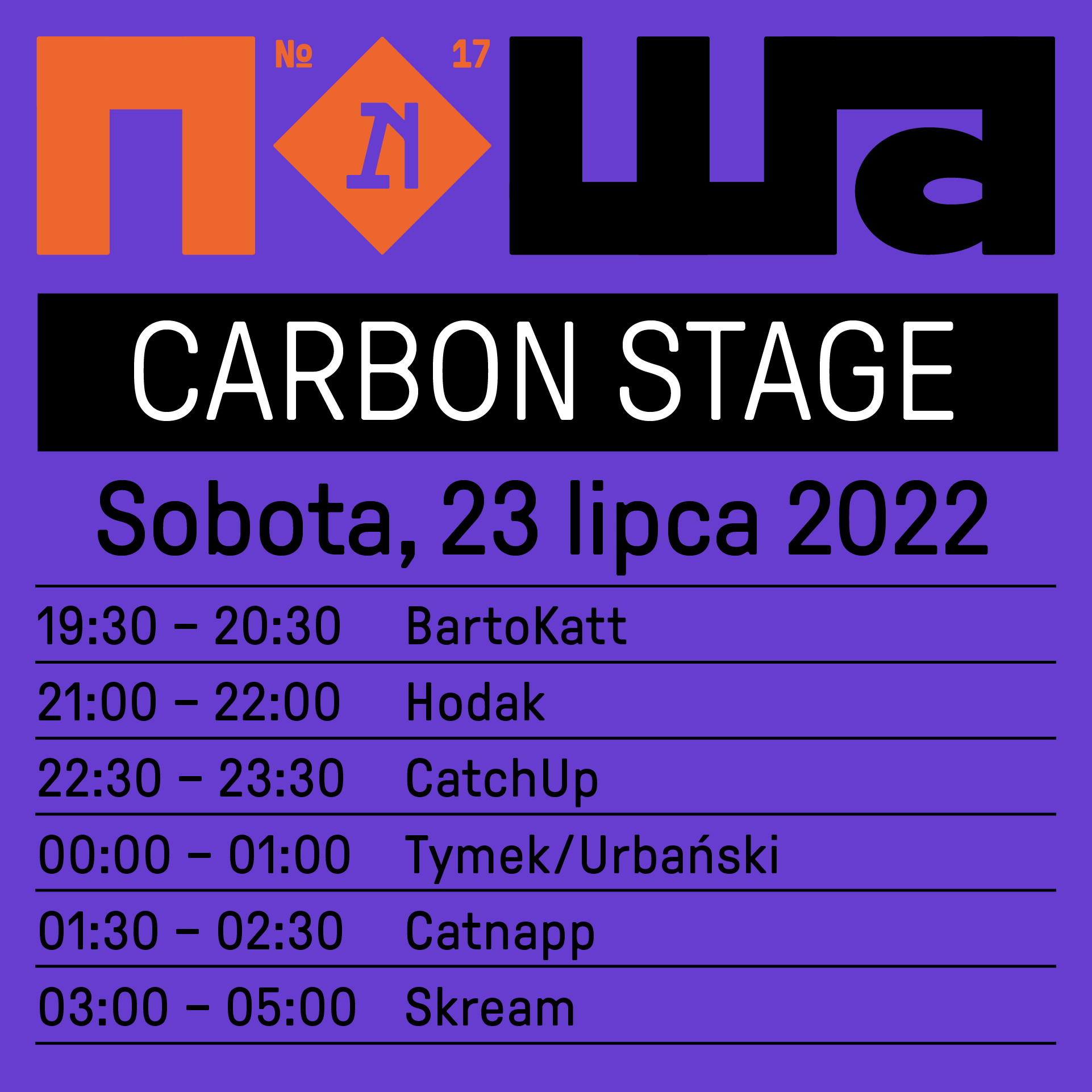 Nie zabraknie też bardzo mocnej reprezentacji polskiej sceny rapowej. Na scenie Carbon wystąpią tak głośni twórcy, jak Zdechły OSA, CatchUp, Hodak, BartoKatt, a przede wszystkim ponadgatunkowy projekt Tymek/Urbanski. Nie zabraknie też trafionych eksperymentów, które zagwarantują dwie niezwykle utalentowane kobiety. Catnapp łączy najnowszą estetykę millenialsów z otwartym liryzmem, a wysublimowane dźwięki chóru i wiolonczeli zaprezentuje Resina.