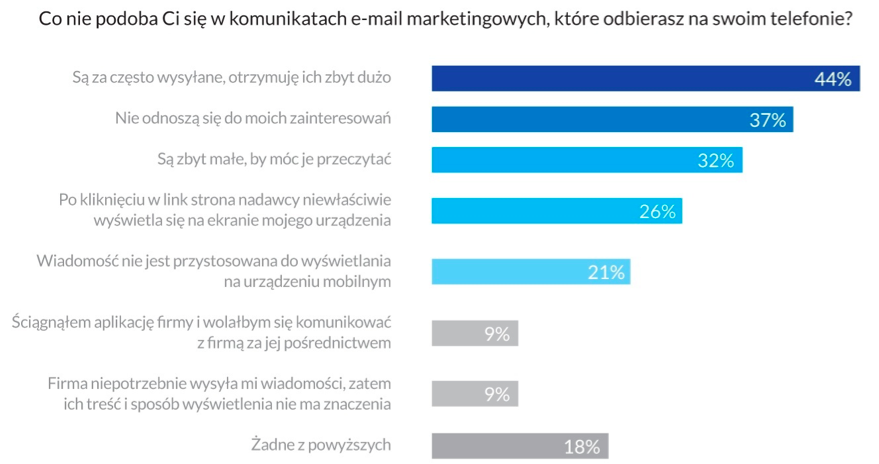 Dwie największe porażki branży. Pierwszą z nich jest spadek reklamy e-mail o 8% w stosunku do poprzedniego roku. Mniej inwestycji w e-mail marketing może wynikać z braku wiary w fakt, że to medium może być naprawdę skuteczne. Ponad 75% użytkowników korzysta z poczty przynajmniej raz dziennie. Mimo, że poczta jest nieodłącznym elementem korzystania z Internetu, to nie jesteśmy zadowoleni z komunikatów, jakie w niej znajdujemy.
