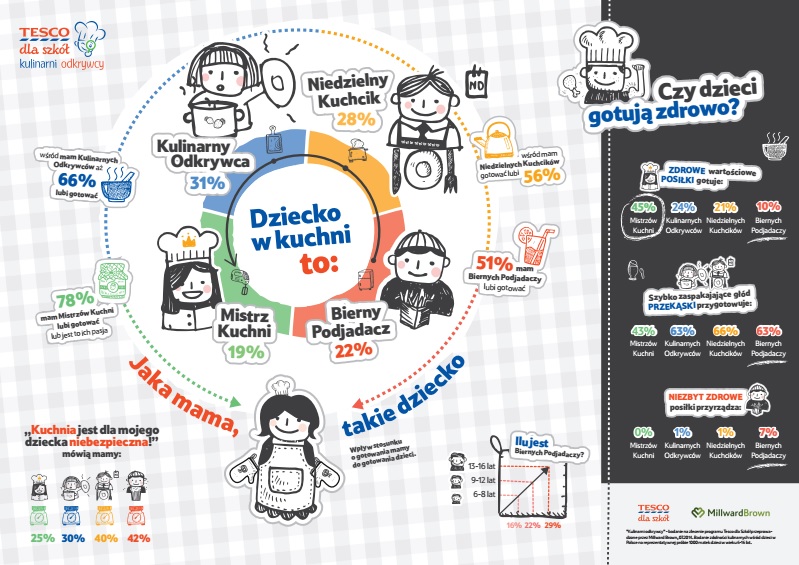 „Kilka miesięcy temu, gdy odbieraliśmy Złoty Spinacz w kategorii CSR za poprzednią edycję Tesco dla Szkół, wręczająca go Mirella Panek-Owsiańska zwróciła uwagę, że dobry CSR nie wystarczy skutecznie komunikować, trzeba go skutecznie robić. Z przyjemnością mogę powiedzieć, że po raz kolejny Tesco dla Szkół odniosło sukces nie tylko komunikacyjny, ale przede wszystkim – również dzięki właściwej komunikacji – przyczyniło się do realnej pozytywnej zmiany” – mówi Marta Marczuk-Komiszke z Tesco Polska. Jak wskazują wyniki ewaluacji, przeprowadzonej przez MillwardBrown, konkurs przyciągnął dzieci o różnorodnym stopniu umiejętności kulinarnych – od Biernych Podjadaczy po Mistrzów Kuchni – i w ciągu pół roku przyczynił się do szybszego ich rozwoju, niż w przypadku rówieśników nieobjętych programem. Aż co 10-te dziecko uczestniczące w programie z Niedzielnego Kuchcika lub Biernego Podjadacza zamieniło się w Kulinarnego Odkrywcę, tj. zwiększyło nie tylko swoją wiedzę na temat gotowania, ale przede wszystkim zaangażowało się w prace w kuchni. Konkurs zniósł również nierówności edukacyjne jeśli chodzi o wiedzę kulinarną, tj. zachęcił do gotowania chłopców oraz młodsze dzieci, grupy zazwyczaj rzadko zachęcane do rozwijania kulinarnych pasji. Uczestnicy konkursu nie tylko w 83% potrafią zaparzyć herbatę, ale też są np. o połowę bardziej chętni do eksperymentowani w kuchni.