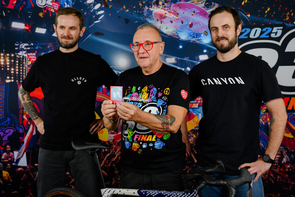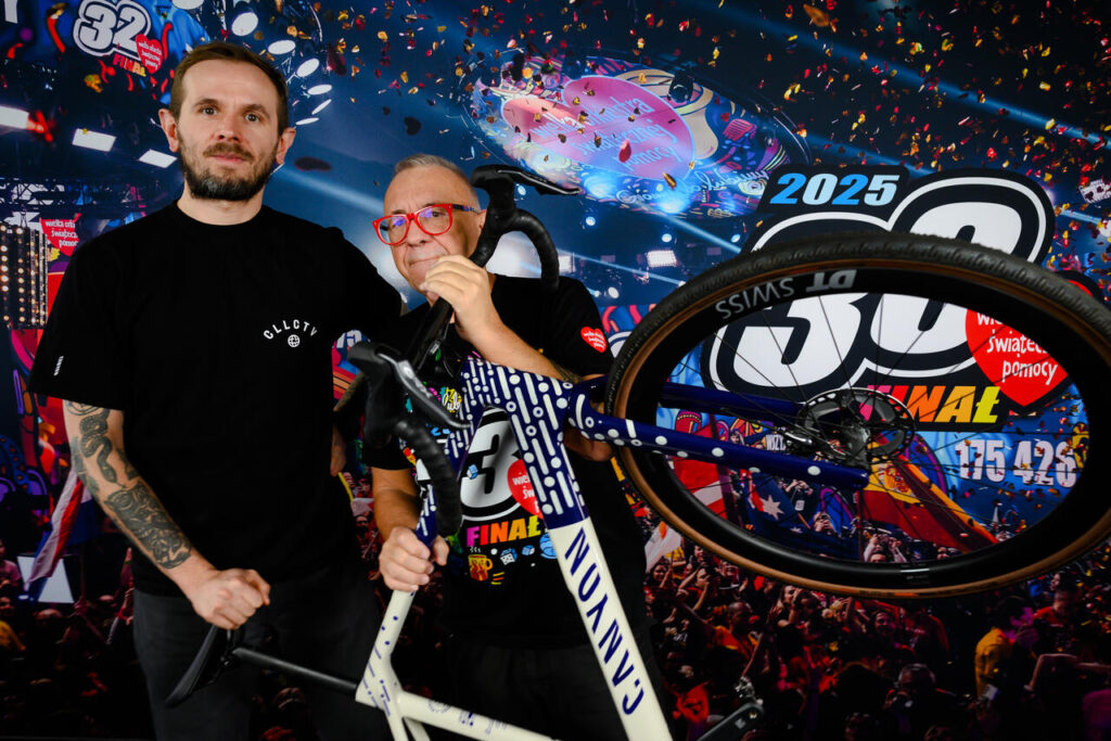 Projekt dał nam interesującą historię, o której mogliśmy opowiadać w zasadzie przez cały rok. Na początku grudnia 2024 roku skontaktowaliśmy się z Fundacją Wielkiej Orkiestry Świątecznej Pomocy. Postanowiliśmy, że tak unikalny projekt, który zaangażował wiele osób, najlepiej będzie przekazać na aukcję, z której cały dochód zasili zbiórkę WOŚP. Spotkaliśmy się z Jurkiem Owsiakiem w celu przekazania roweru na aukcję oraz nagrania krótkiego materiału video, aby jak najszybciej móc utworzyć licytacje na portalu Allegro.