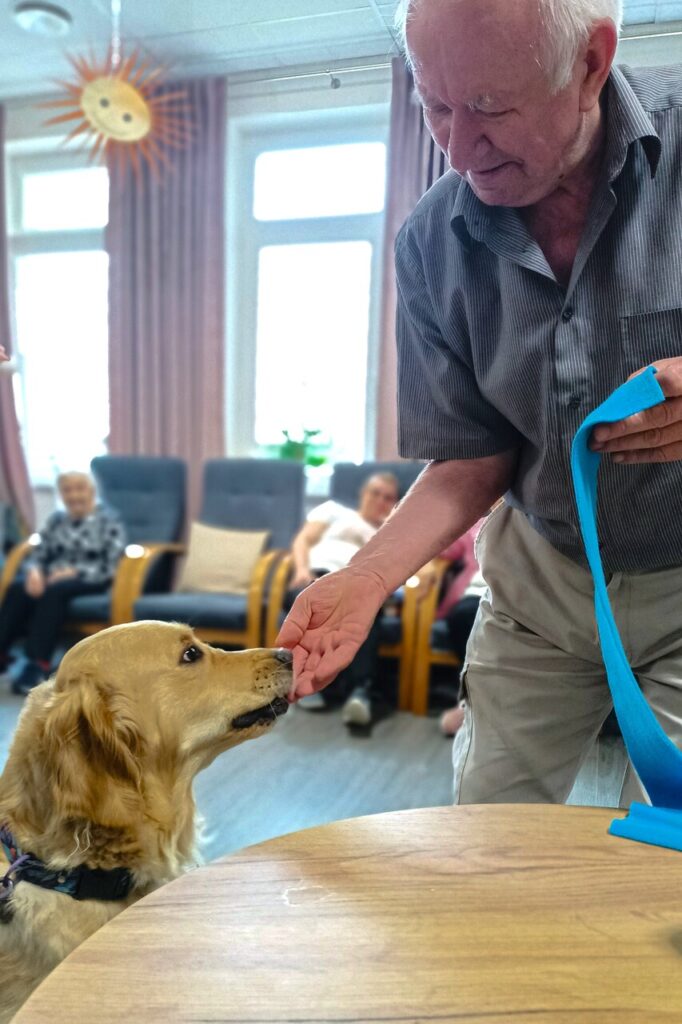Dla seniorów obecność psa staje się też pretekstem do nowych interakcji między pensjonariuszami, co pozwala zmniejszyć uczucie osamotnienia. Pojawieniu się psa w ośrodku zawsze towarzyszą uśmiech, rozluźnienie, po prostu szczęście. I właśnie to szczęście, te wszystkie pozytywne emocje jakie obserwujemy w trakcie zajęć dogoterapii, wzruszenie, otwieranie się na ćwiczenia, na relacje z innymi, to te pozytywne niespodzianki, które są dla nas najważniejszym motywatorem do prowadzenia tego programu.