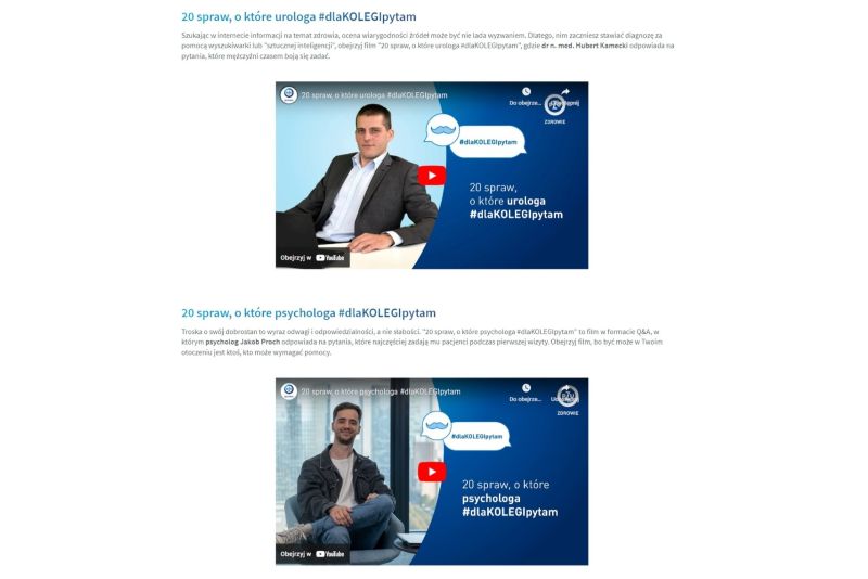 Akcja #dlaKOLEGIpytam wystartowała 4 listopada, tuż po długim weekendzie. Tego dnia udostępniliśmy landing page akcji, który był naszą bazą merytoryczną. Znalazły się tam artykuły, infografiki i filmy w formacie Q&A #dlaKOLEGIpytam | Zdrowie w męskim stylu.