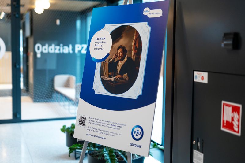 Ważna jest dla nas także komunikacja wewnętrzna. Pamiętaliśmy o naszych pracownikach, aby zmotywować ich do dbania o swoje zdrowie w ramach posiadanych pakietów opieki medycznej. Poza klasyczną intranetową wymianą informacji zorganizowaliśmy również stacjonarny akcent tej akcji. Jak przystało na dzieła sztuki, nasze kreacje zostały „wystawione” na publiczny widok w lobby PZU Park w formie mini wernisażu.