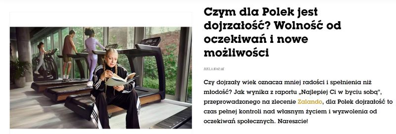 Pomysł narodził się w ramach lokalizacji globalnej kampanii na wiosnę-lato 2024, pod hasłem „Najlepiej ci w byciu sobą”. Naszym celem w Polsce było szerokiej grupie klientów, że Zalando to miejsce również dla nich. Wyszliśmy z prostego insightu: „Dojrzewając, zyskujemy pewność siebie i własnych wyborów. Wiemy, kim jesteśmy, czego oczekujemy i nie boimy się już oceny innych. Czujemy się dobrze takimi, jakimi jesteśmy”. Na jego kanwie zbudowaliśmy lokalny koncept kampanii adresujący osoby powyżej 35. roku życia. Kampania zachęcała do celebrowania autentyczności poprzez modę oraz do odpuszczenia rzeczy, które nam nie pasują i wybrania tego, co dla nas naprawdę ważne.
