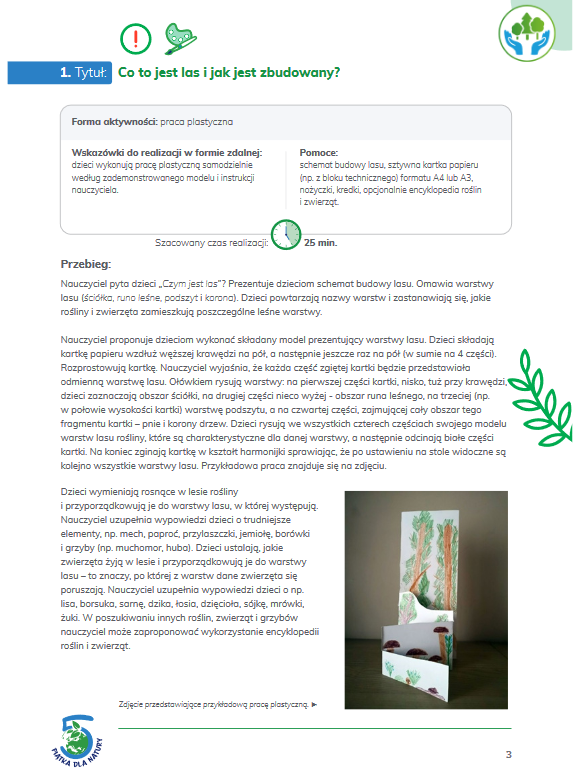 Przy opracowywaniu materiałów edukacyjnych (scenariusze lekcji, karty pracy) na rzecz programu współpracowano z doświadczonym metodykiem edukacji wczesnoszkolnej. Scenariusze związane w pięcioma obszarami ochrony środowiska są zgodne z programem nauczania klas I-III szkoły podstawowej dzięki czemu są pomocą edukacyjną dla nauczycieli i w interesujący dla dzieci sposób przybliżają im wiedzę z zakresu ochrony środowiska.
