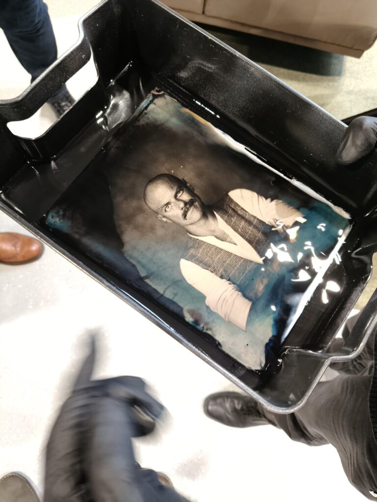 Proces tworzenia jednego portretu trwa około 30 minut. Wymaga wiedzy, precyzji oraz doskonałego wyczucia czasu. W pierwszej kolejności fotograf ustawia modela, przygotowuje szkło w ciemni, następnie biegnie do aparatu, wykonuje zdjęcie przy błysku lampy, po czym w ciągu kilkudziesięciu sekund musi zalać szkło wodą, by utrwalić obraz. Co ciekawe, na efekt finalny wpływają nawet takie detale jak wilgotność powietrza czy rodzaj wody – filtrowana daje inny rezultat niż ta bezpośrednio z kranu. Na oczach uczestników „dzieje się chemia” – przez dwie minuty portret powoli wyłania się na tafli szkła, a po wyschnięciu zostaje zabezpieczony lakierem.