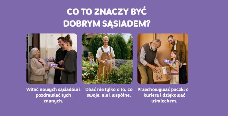 W trakcie kampanii skupiliśmy się na kilku kluczowych działaniach. Po pierwsze na szerokozasięgowej komunikacji w TV i digitalu. Ze względu na lokalną realizację, akcja przedstawia codzienne, życiowe sytuacje Polaków, w których powinniśmy pielęgnować sąsiedzkie relacje. Po drugie zaangażowanie znanego wszystkim Polakom skoczka narciarskiego Piotra Żyły – tym razem nie w stroju narciarskim, a zwykłym domowym ubraniu. W ten sposób chcieliśmy pokazać, że każdy jest czyimś sąsiadem. Po trzecie podjęcie szeregu współprac ze znanymi twórcami internetowymi. Dopełnieniem naszego projektu było wypuszczenie na rynek trzech limitowanych opakowań mlecznej czekolady Milka z dedykowanymi, sąsiedzkimi wiadomościami.