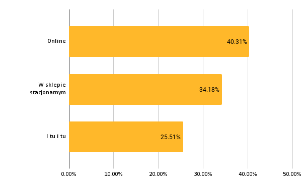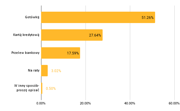 Ponad 51% woli płacić za zakupy gotówką, a prawie 28% użyłoby do tego karty.