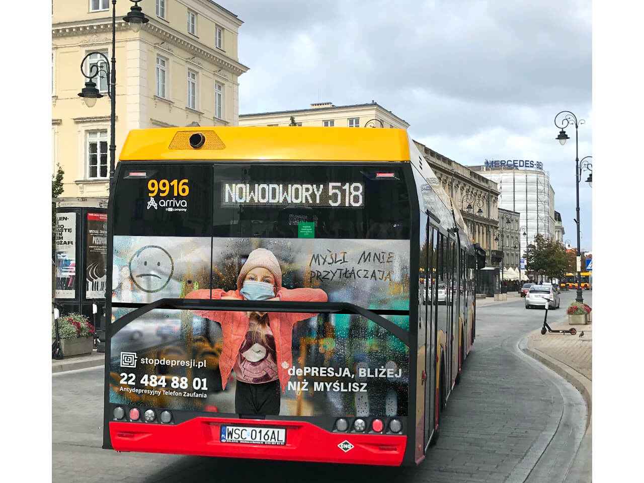 Termin tych działań nie jest przypadkowy — 23 lutego przypada bowiem Ogólnopolski Dzień Walki z Depresją. W ramach kampanii pod hasłem „Stop depresji” na autobusach miejskich w Warszawie (powierzchnie typu Busback na tyłach pojazdów) pojawią się layouty graficzne zachęcające do korzystania ze wsparcia Antydepresyjnego Telefonu Zaufania, od lat komunikowanego przez Itakę w ramach kampanii społecznych.
