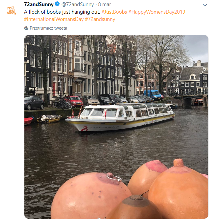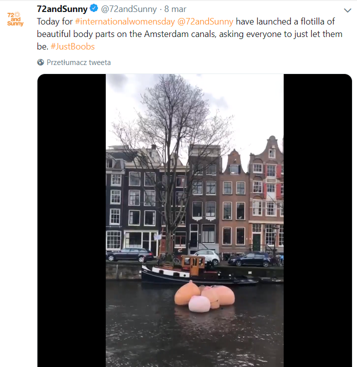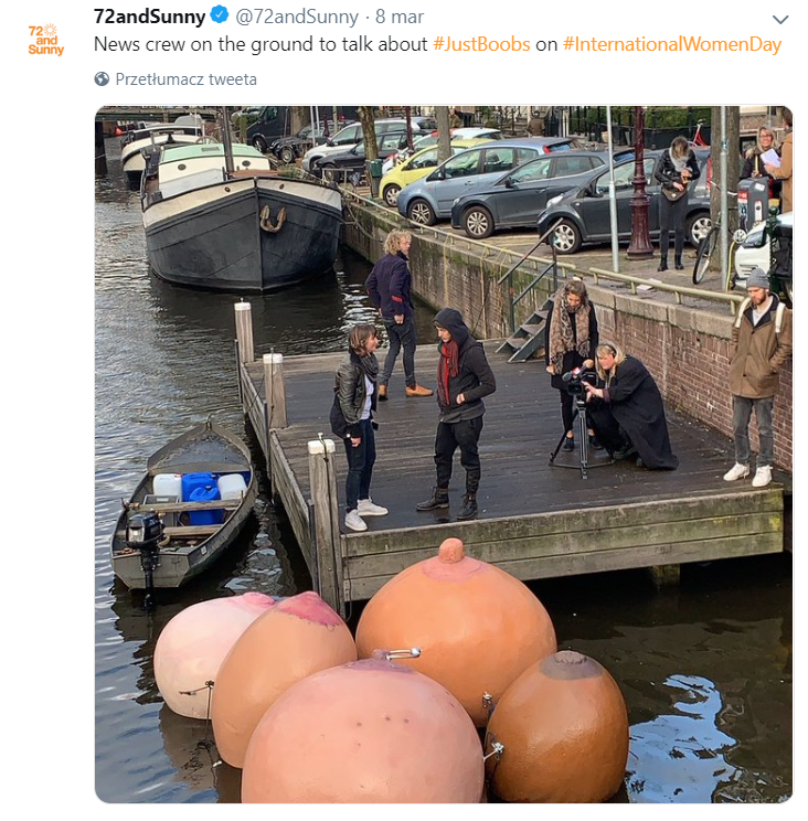 Z tej okazji część żeńska agencji 72andSunny Amsterdam stworzyła gigantyczne piersi, które 8 marca dryfowały po amsterdamskich kanałach. Akcja tym samym miała na celu pokazanie kobietom, że piersi to tylko piersi, część ciała, jak każda inna i z pewnością nie powinny być niczym wstydliwym.