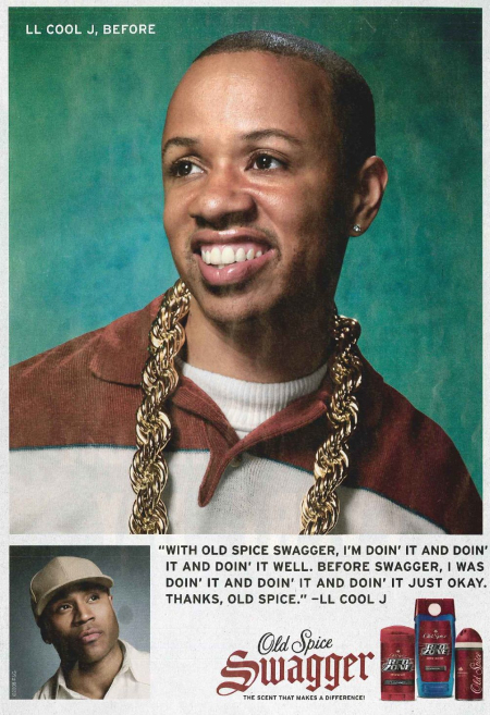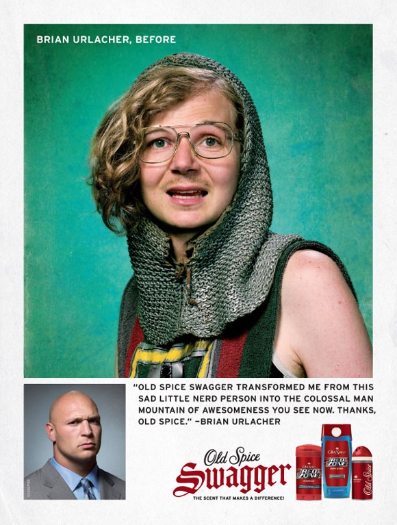 W 2008 roku Procter & Gamble rozpoczęło współpracę z agencją reklamową Wieden+Kennedy. Zlecono jej stworzenie kampanii, której głównym celem miała być zmiana produktu Glacial Falls z droższej serii Red Zone i skierowanie go odbiorców w wieku 12-34 lat. W ten sposób powstała linia „Swagger”, którą wspierały reklamy drukowane oraz seria spotów prezentujących LL Cool J (aktora i wykonawcy hip-hopowego), Tony’ego Stewarta (kierowcę NASCAR) oraz Briana Urlachera (zawodnika futbolu amerykańskiego) jako nerdów, którzy zmienili się dopiero po użyciu nowego Old Spice.