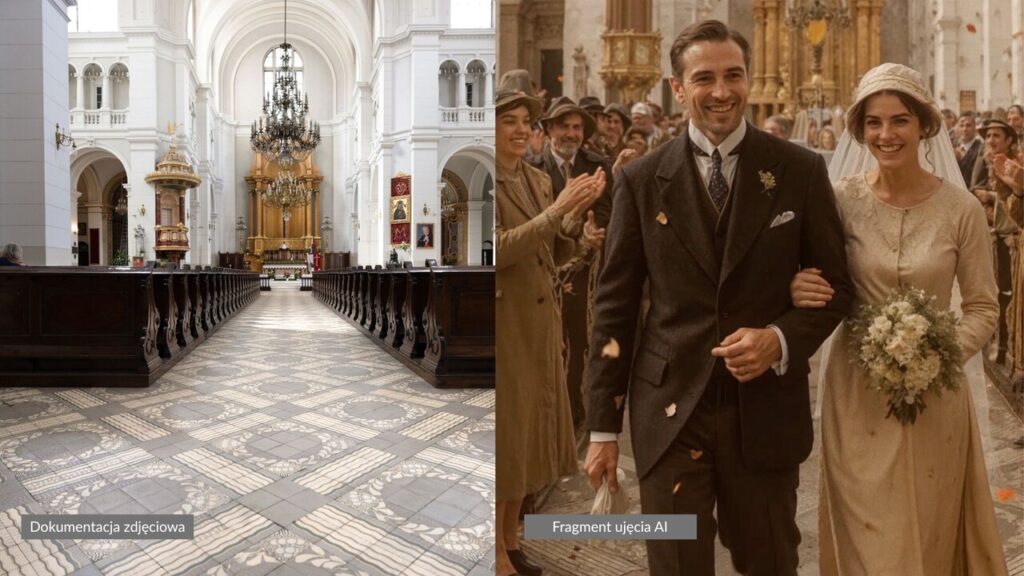 Część zdjęć powstała w fabryce marki w ramach klasycznego planu filmowego, a część – przy użyciu AI – w historycznych wnętrzach, w których do dziś obecne są płytki Opoczna. To m.in. Kościół na Placu Zbawiciela w Warszawie oraz Gmach Główny Politechniki Warszawskiej. Na podstawie sesji zdjęciowej dokumentującej te przestrzenie i wzory płytek powstały realistyczne ujęcia generowane przez sztuczną inteligencję.