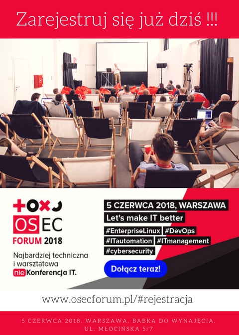 Warsztaty i prelekcje poprowadzą także nasi OSECowi Instruktorzy / Konsultanci – Piotr Baranowski, Dariusz Puchalak, Radosław Kujawa – entuzjaści Linuksa i technologii IT w wydaniu open-source. Zaprosiliśmy też innych wspaniałych Gości. Więcej informacji już wkrótce – podsumowuje Filip Gontarz.