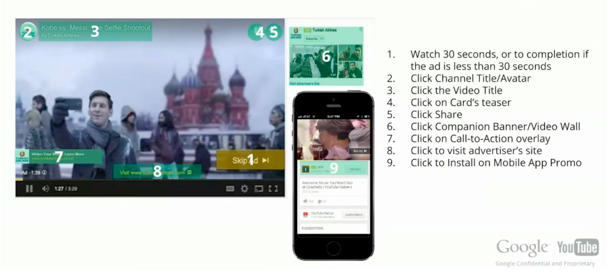 Od 8 czerwca 2015 roku pobierane są opłaty za zaangażowanie widza w reklamę TrueView. Lista płatnych miejsc w spocie, w które można kliknąć i przejść do witryny lub wykonać konwersję jest długa. Reklamodawca zapłaci za obejrzenie reklamy (30 sekund lub całej, gdy jest krótsza niż 30 sek.), za kliknięcie m.in. w nazwę filmu, w kartę, w przycisk „Share”, w baner towarzyszący, nakładkę z wezwaniem do działania, w nazwę kanału lub avatar.