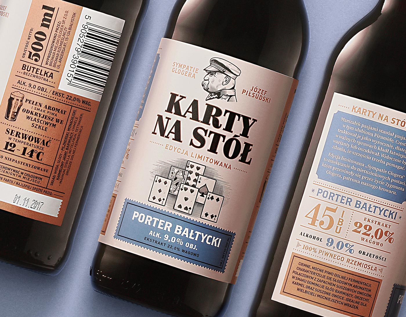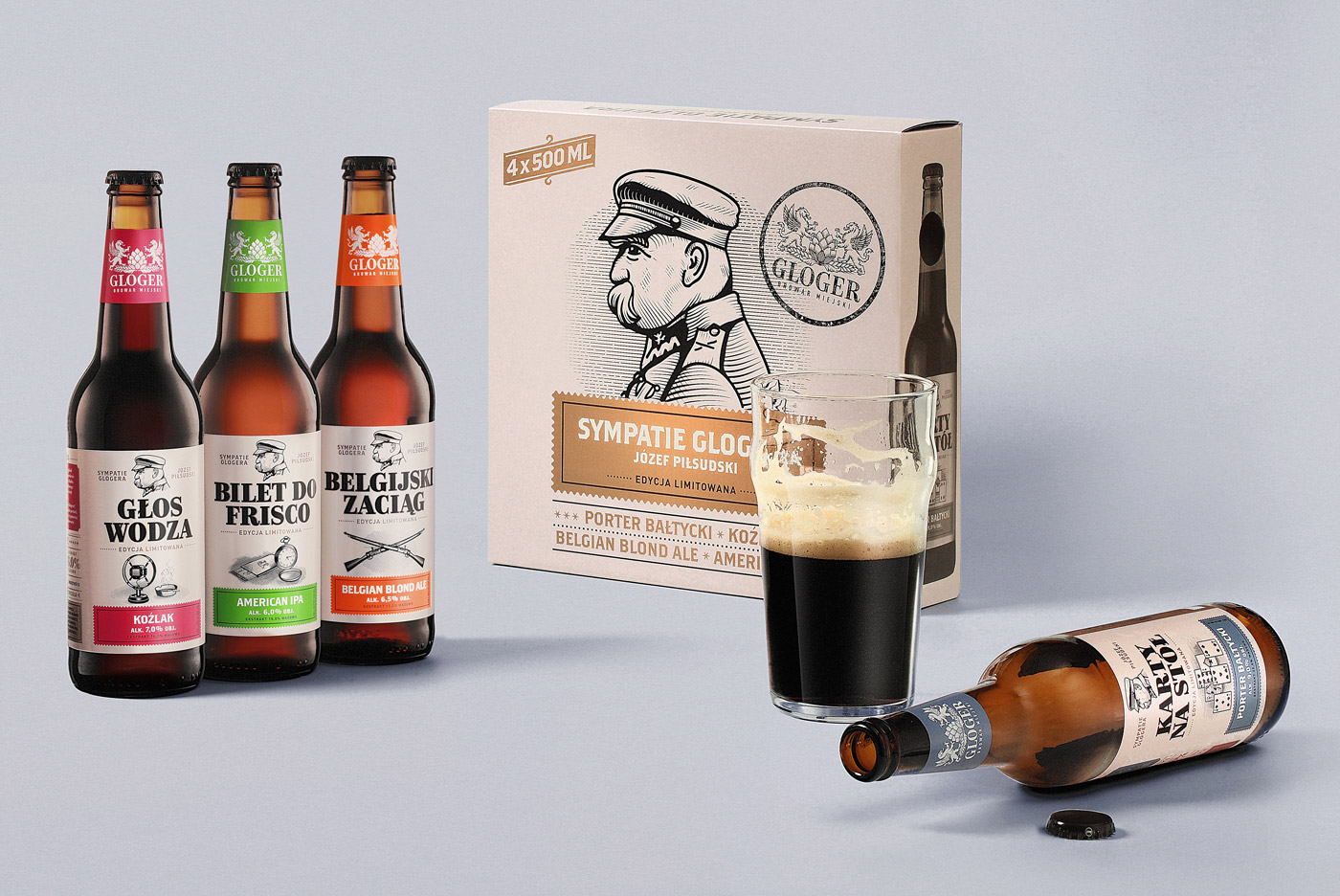 W przypadku edycji limitowej „Sympatie Glogera” zadaniem agencji było nawiązanie do nietuzinkowych postaci, które przewinęły się przez życie patrona browaru. Premierową serię z czterema oryginalnymi stylami piwa: Porterem Bałtyckim, Koźlakiem, Belgian Blond Ale i American IPA, zadedykowano Józefowi Piłsudskiemu.