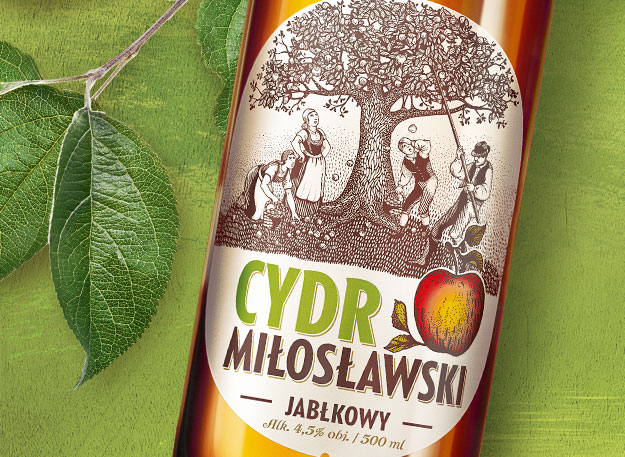 Etykieta została zaprojektowana na bazie oryginalnej ryciny z XIX w. i komunikuje wartości ważne dla nowej marki Browaru Fortuna – przywiązanie do tradycji i natury (przy produkcji Cydru Miłosławskiego wykorzystywane są wyłącznie naturalne składniki).