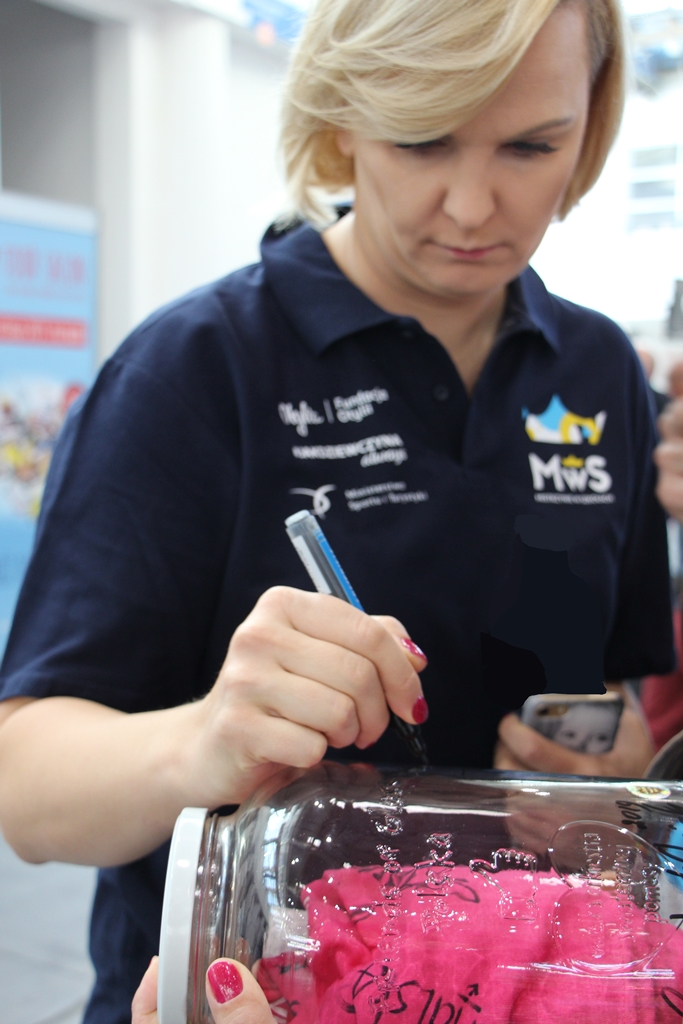 Kolejnym krokiem było podpisanie słoja przez Jurka Owsiaka, który w środku umieścił COŚ od siebie. Coś, co – zgodnie z ideą „Wiadomości w słoju” – jest bliskie i charakterystyczne. O to samo poproszono Otylię Jędrzejczak, Kamila Stocha, Bartka Kurka i Marka Kondrata. Każda z tych wybitnych postaci nie tylko podpisała się na słoju, ale też umieściła w nim swoje COŚ – to właśnie jest „Wiadomość w słoju”. Otylia Jędrzejczak przekazała m.in. koszulkę z podpisami medalistek olimpijskich – swoim, a także Oktawii Nowackiej i Julii Michalskiej oraz dwukrotnej mistrzyni Europy Justyny Święty-Ersenic. Trzykrotny mistrz olimpijski Kamil Stoch umieścił w słoju swoje gogle z autografem. Podobnie uczynił najlepszy polski sportowiec 2018 roku i mistrz świata Bartek Kurek, podpisując się na koszulce meczowej. Natomiast Marek Kondrat włożył do słoja zdjęcie swojego miejsca na ziemi z dedykacją. W słoju znajduje się też kilka innych niespodzianek, a pozna je i otrzyma na własność wyłącznie osoba, która słój wylicytuje pod tym linkiem.