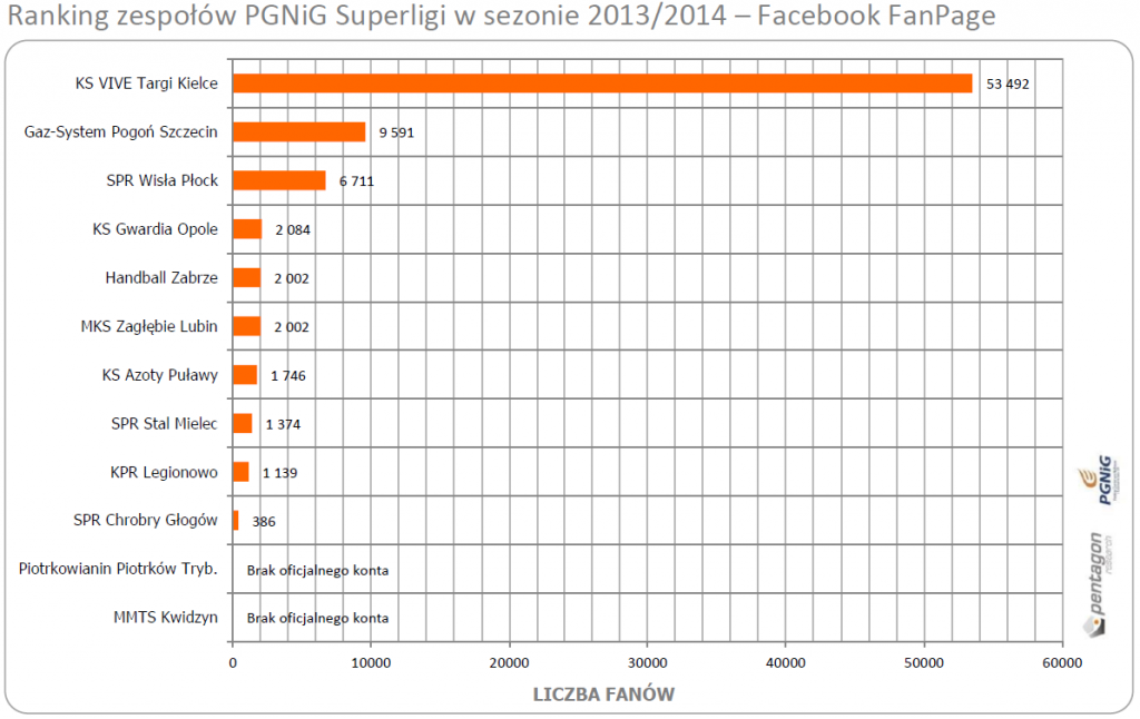 Zwycięzcą przygotowanego rankingu został wspomniany wcześniej Mistrz Polski, którego FanPage zebrał łącznie 46 019 fanów. Miejsce drugie zajęła drużyna Gaz-System Pogoń Szczecin z wynikiem 8 777 osób, które „Lubią to”. Na trzecim stopniu podium uplasowała się drużyna Orlen Wisła Płock, której FanPage posiada 6 588 fanów.
