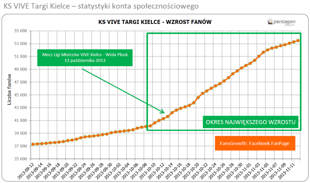 Tendencję wzrostową można potwierdzić chociażby statystykami konta społecznościowego drużyny KS VIVE Targi Kielce – obecnego Mistrza Polski, które w ciągu ostatniego miesiąca zyskało 10 727 fanów, co odpowiadało wzrostowi procentowemu o 7,07%.