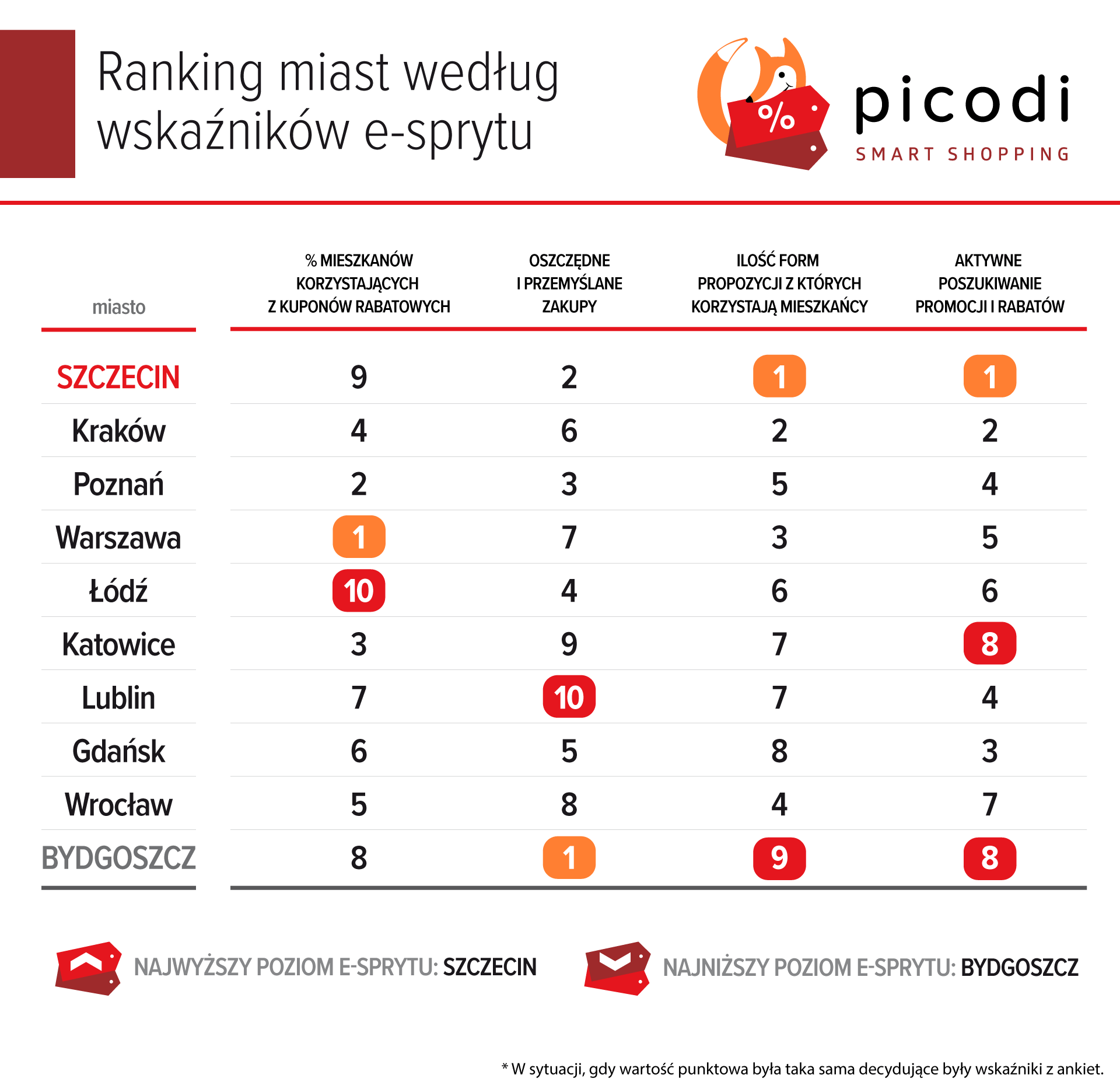 Picodi zbadało zwyczaje mieszkańców dziesięciu największych polskich miast, oceniając ich e-spryt – czyli umiejętność rozważnego podejmowania decyzji oraz aktywnego wyszukiwania rabatów i zniżek.