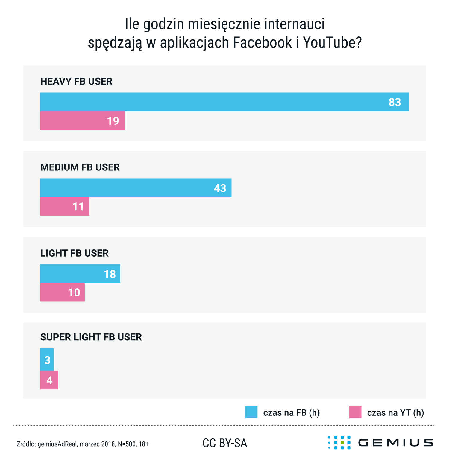 Nowe jednoźródłowe badanie Gemiusa obejmuje urządzenia mobilne, w tym aplikacje Facebooka i YouTube’a. Okazuje się, że heavy userzy największego serwisu społecznościowego stanowią również grupę najchętniej odwiedzającą serwis wideo należący do Google’a. Jeśli spędzają mniej czasu w aplikacji Facebooka, spędzają go też mniej w aplikacji YouTube’a.