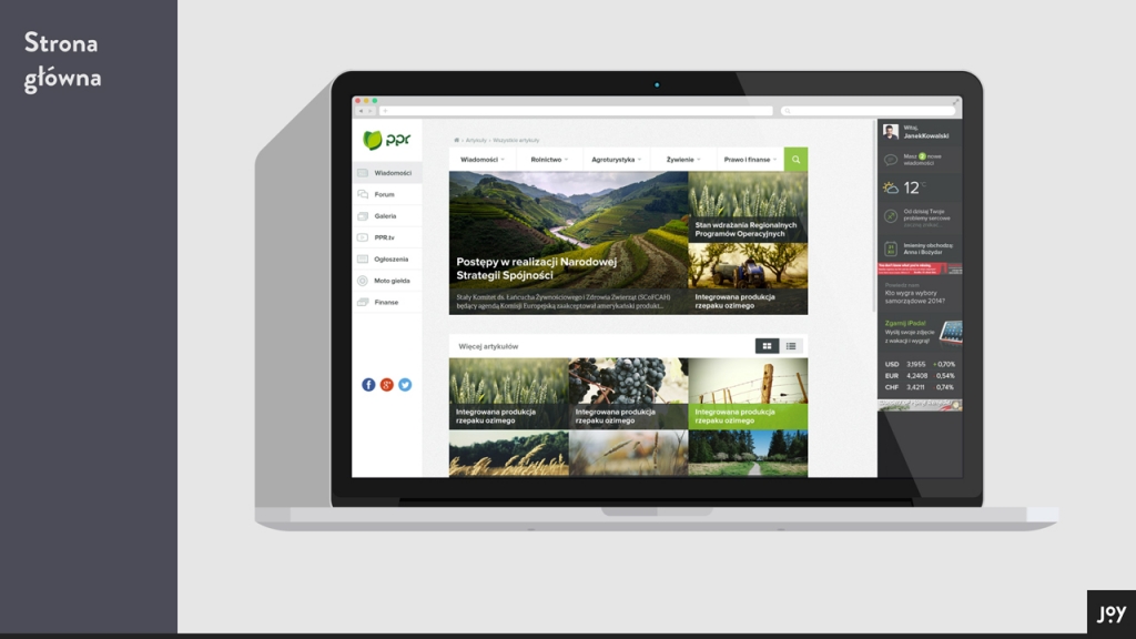 Lubimy tworzyć maksymalnie dopasowane rozwiązania dla naszych klientów i użytkowników, dlatego zaproponowaliśmy zbudowanie portalu w oparciu o Area of interests, czyli algorytm, który będzie się samodzielnie uczył tego, co interesuje użytkownika. Po kilku przeczytanych artykułach zacznie sam proponować mu odpowiednie treści. Jeśli użytkownik jest np. mleczarzem, to może być pewien, że po wejściu do serwisu zobaczy informacje na temat mleka oraz panel widgetów z adekwatnymi informacjami.