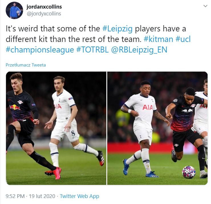 19 lutego br. odbył się mecz klubu piłkarskiego Tottenham przeciwko RB Lipsk, w ramach 1/8 finału Ligi Mistrzów. W momencie gdy tylko piłkarze niemieckiej drużyny wyszli na boisko, kibice zauważyli, że część z nich gra w innych strojach niż pozostali koledzy – na siedmiu koszulkach logo sponsora – czyli marki Red Bull – było bowiem kolorowe, zaś na pozostałych czterech – szare.