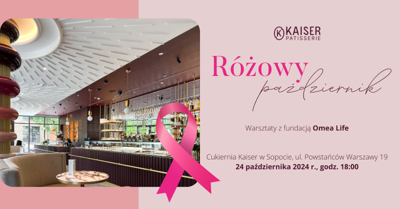 Fundacja OmeaLife wraz z sopocką cukiernią Kaiser Patisserie z okazji Pink October zaprasza do udziału w warsztatach samobadania piersi. 24 października o godz. 18 będzie też można porozmawiać z przedstawicielami OmeaLife, zadać nurtujące gości pytania na temat nowotworu piersi i profilaktyki, a także dowiedzieć się więcej na temat fundacji i wesprzeć jej działanie.