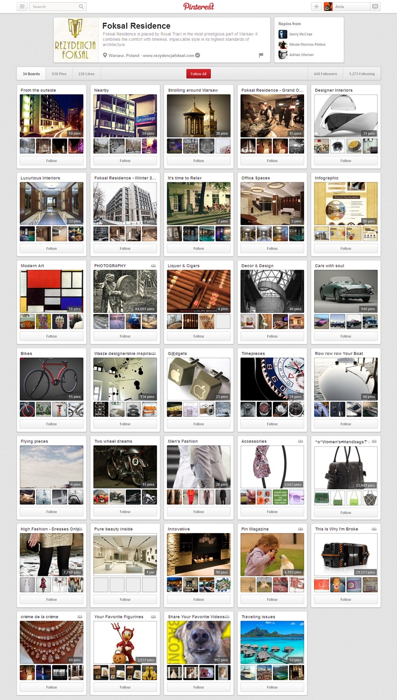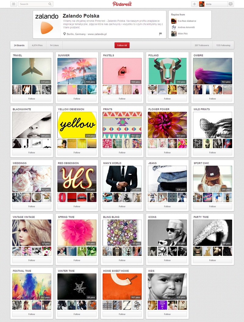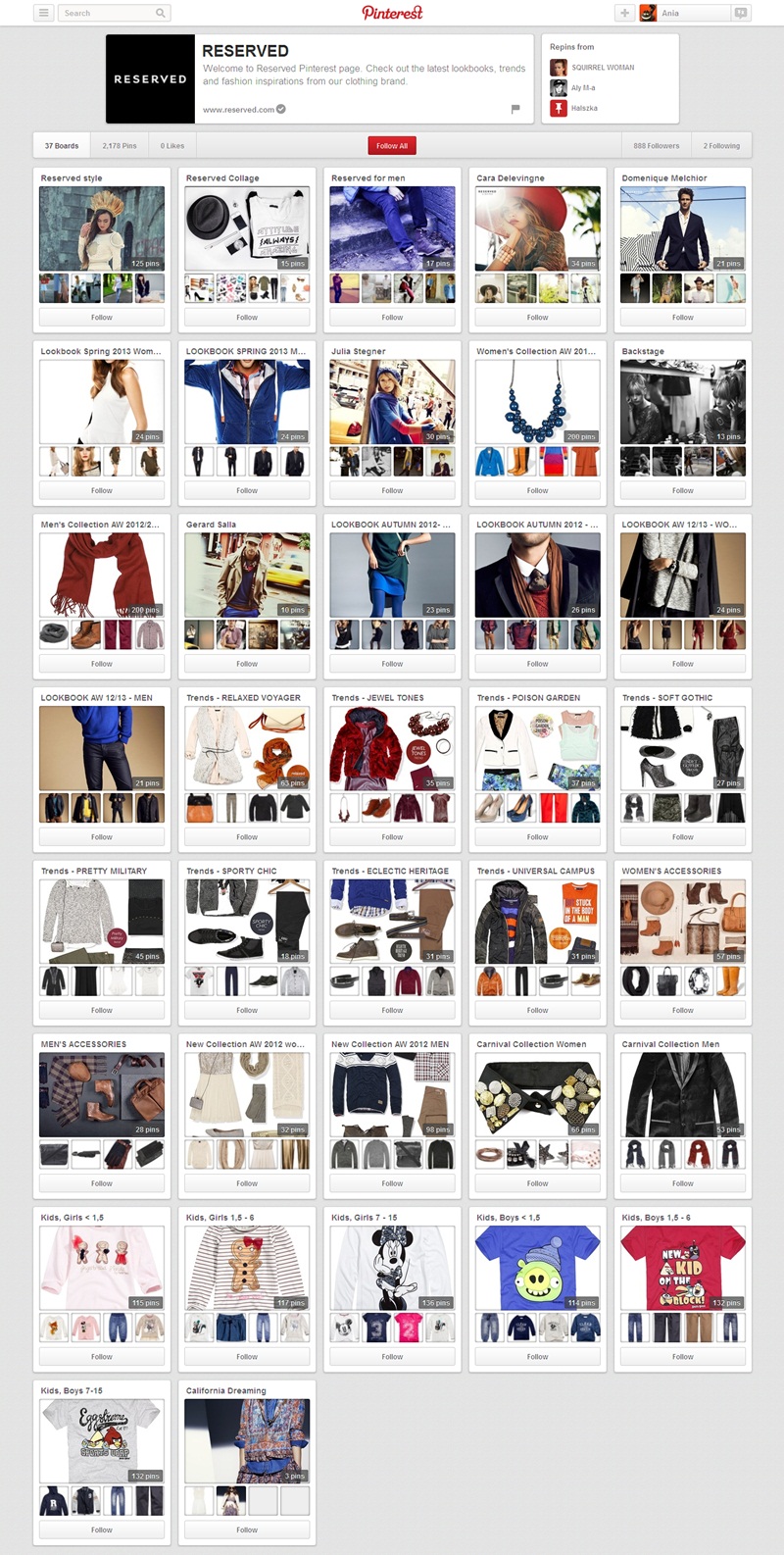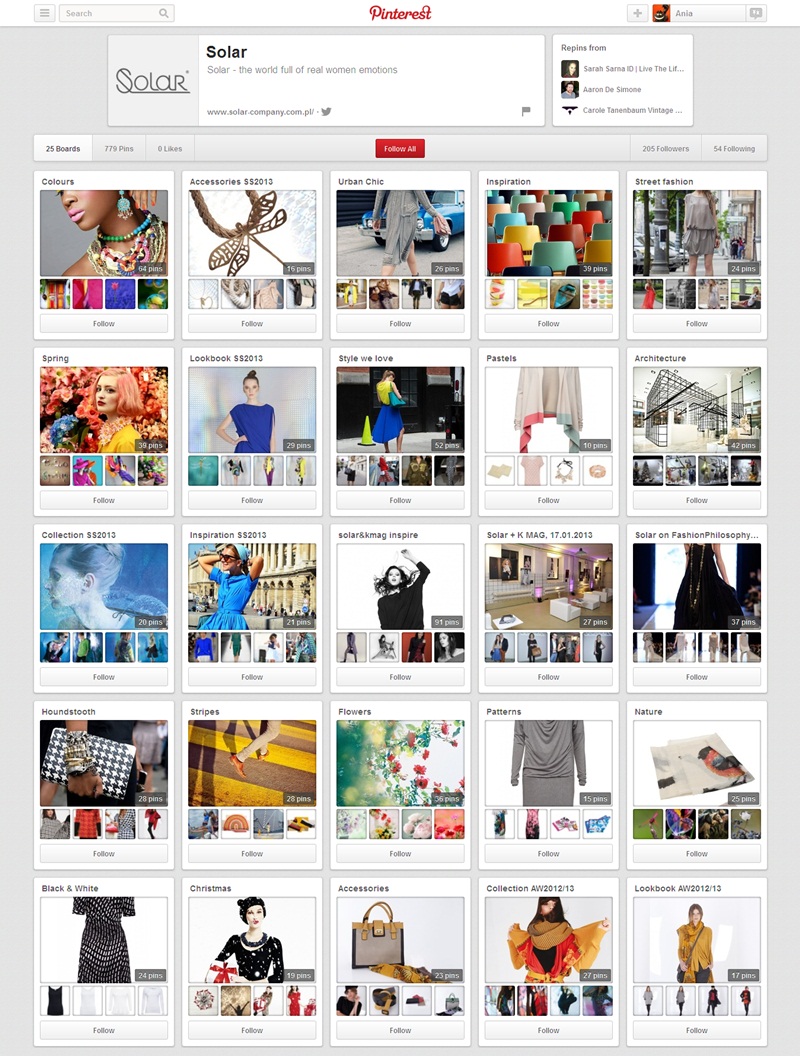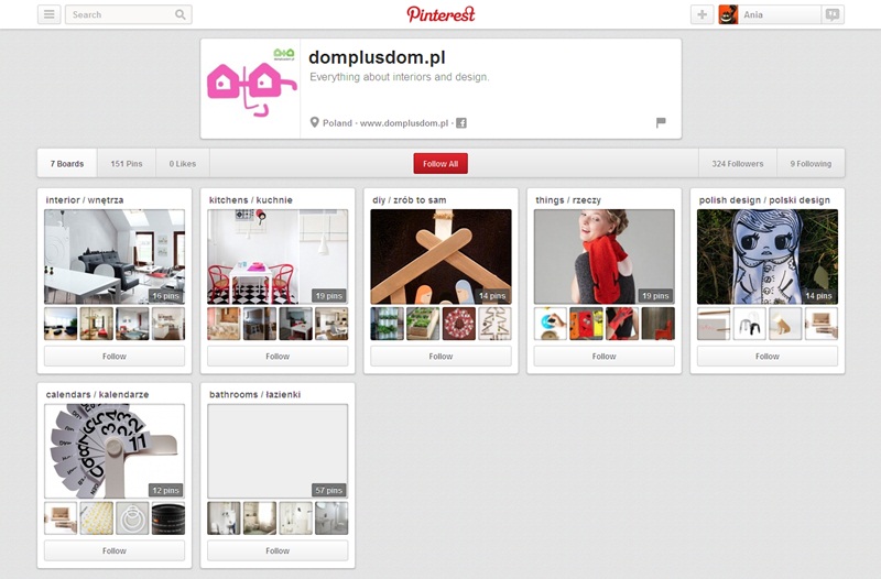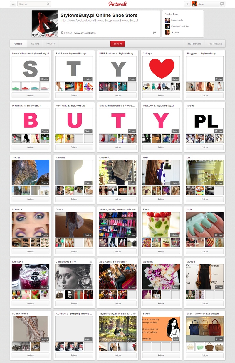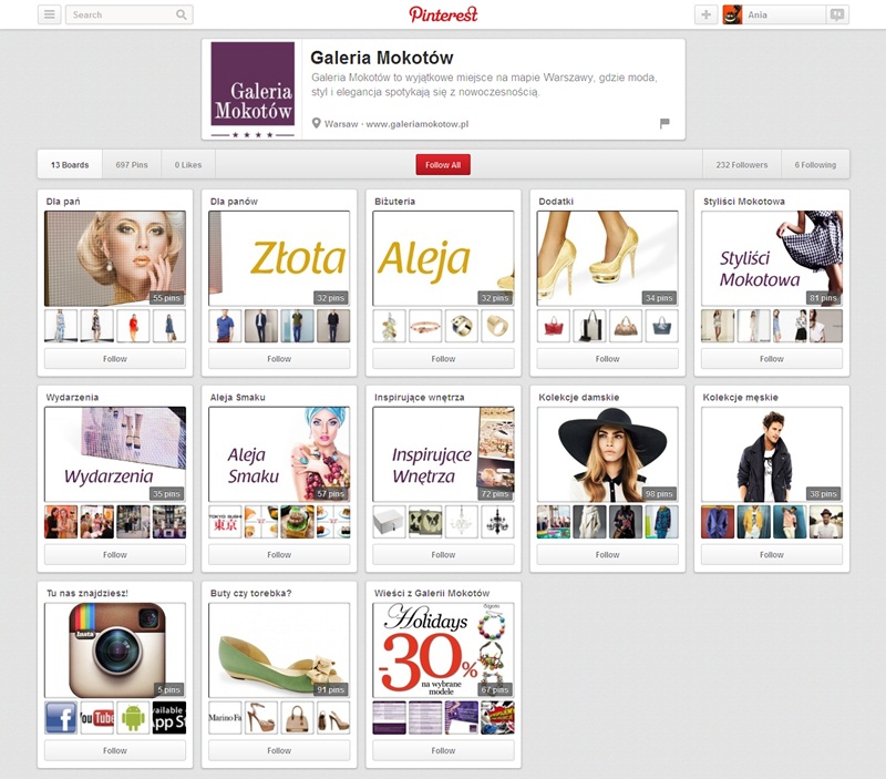 W ostatnim półroczu na Pinterest wkroczyły także centra handlowe – oprócz Galerii Mokotów (232 obserwujących) pojawiły się m.in. Galeria Łódzka, poznański Stary Browar, Galeria Sieradzka, Galeria Wisła oraz Galeria Malta.