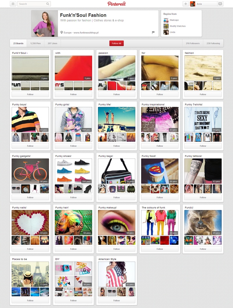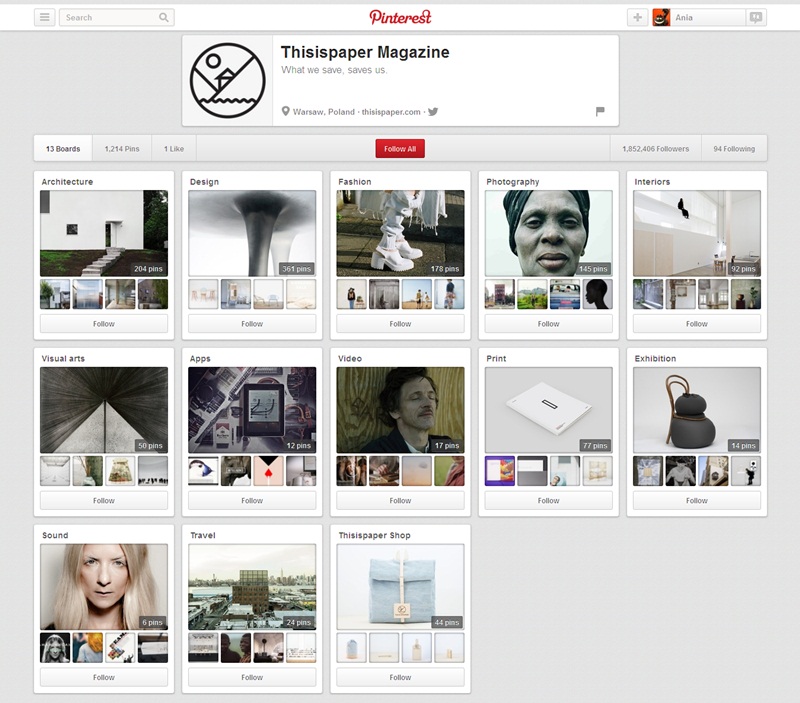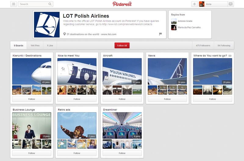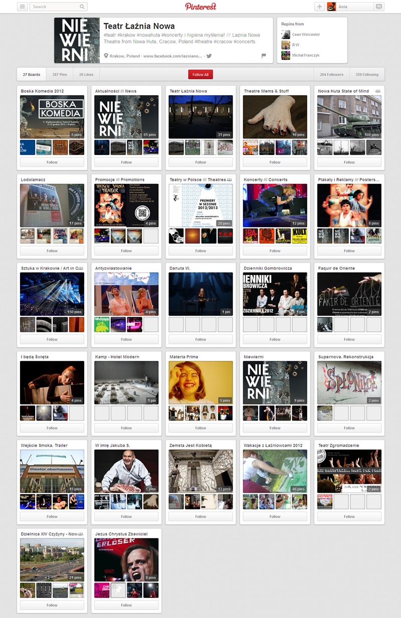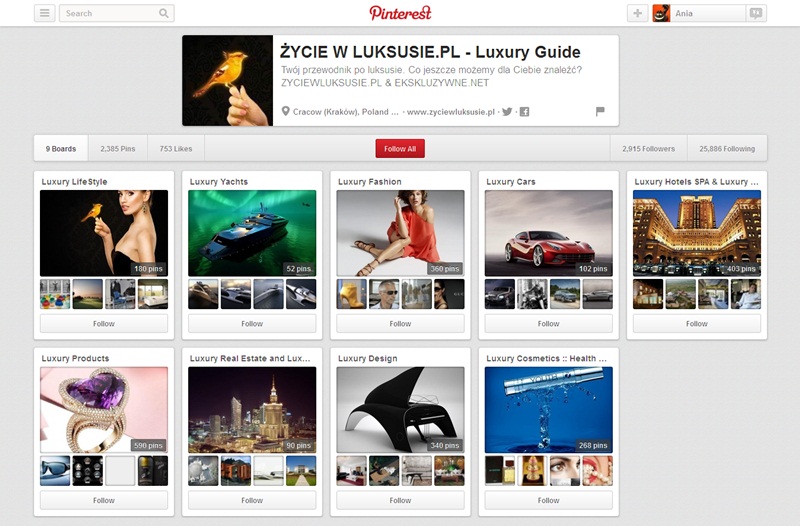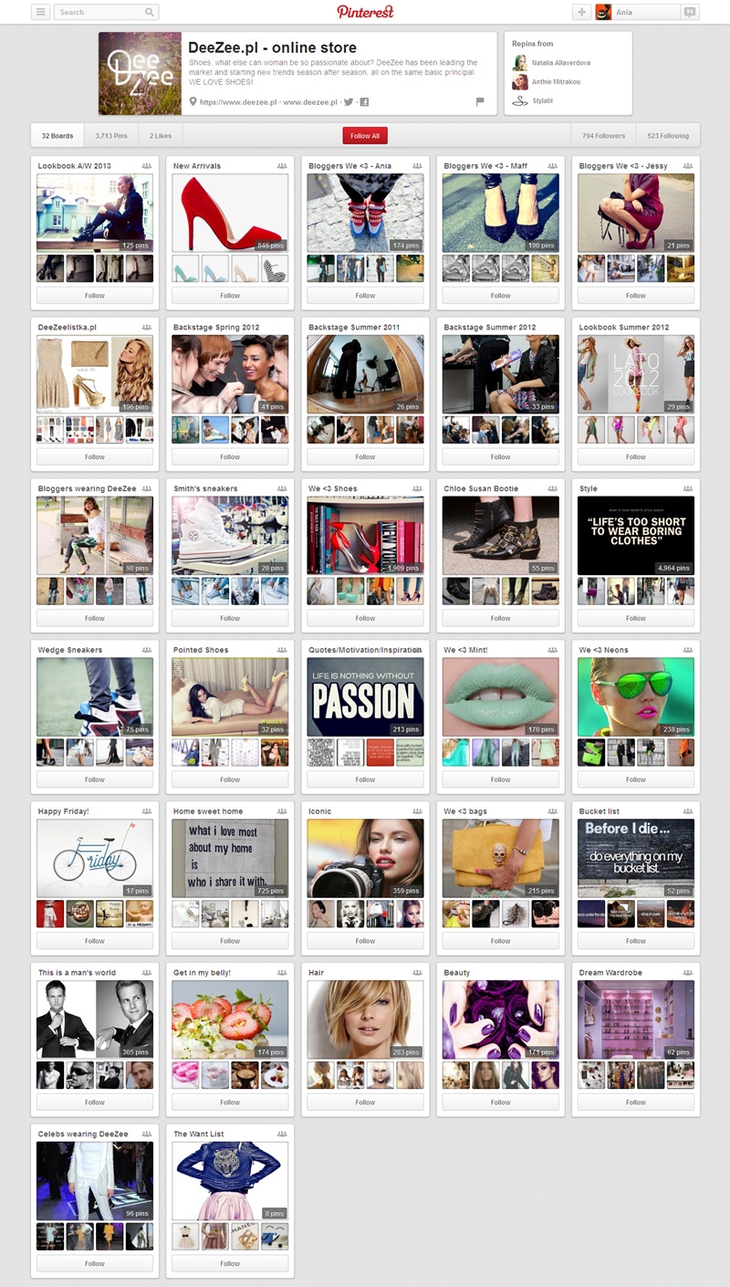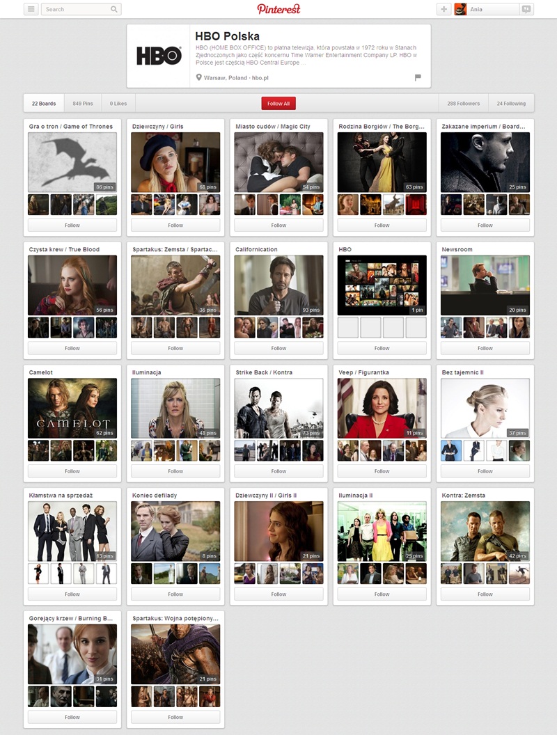 W ostatnim półroczu na Pinterest wkroczyły także centra handlowe – oprócz Galerii Mokotów (232 obserwujących) pojawiły się m.in. Galeria Łódzka, poznański Stary Browar, Galeria Sieradzka, Galeria Wisła oraz Galeria Malta.