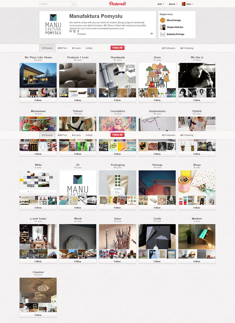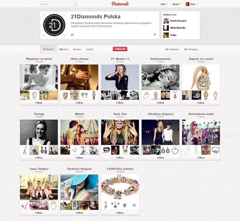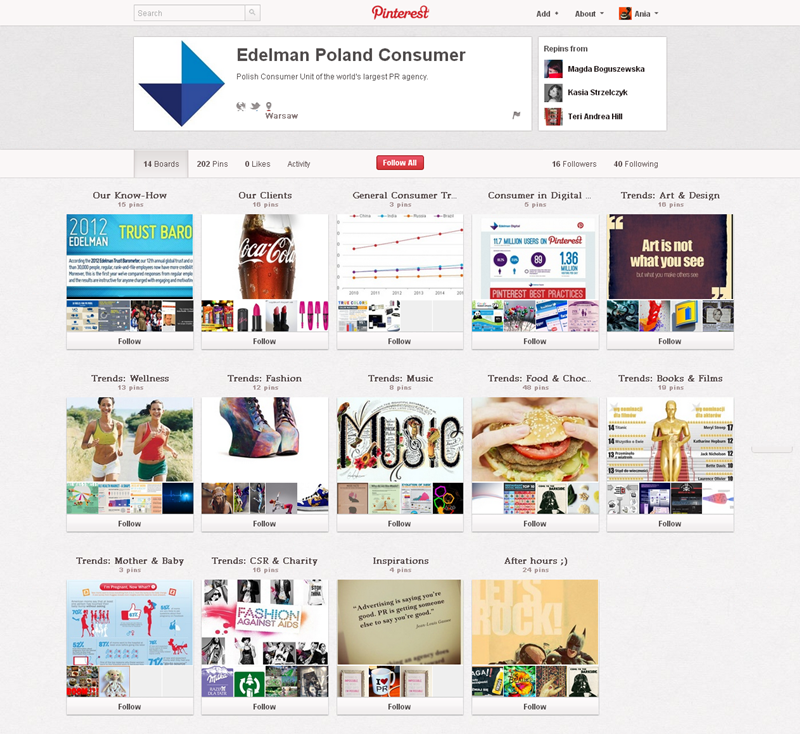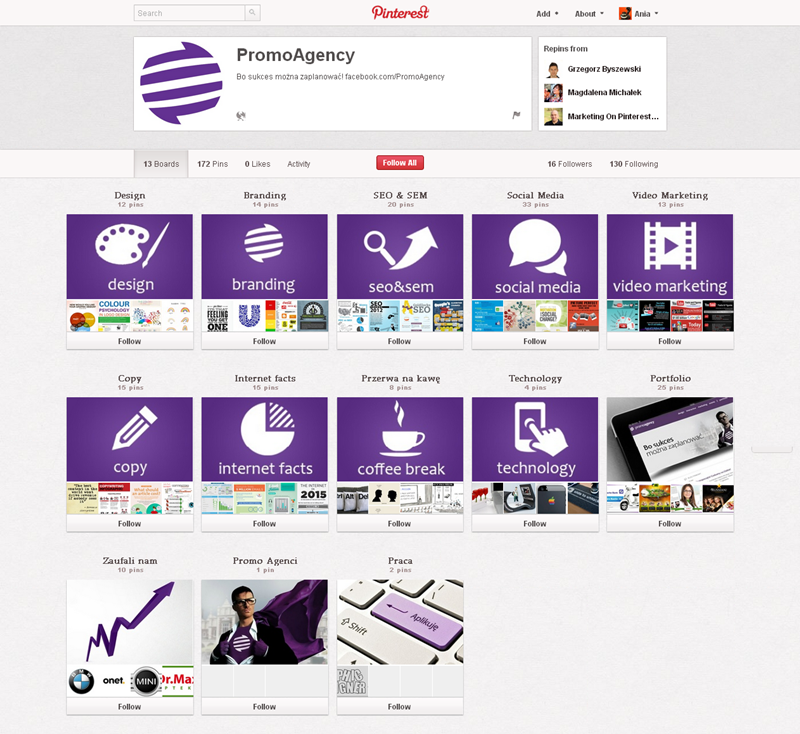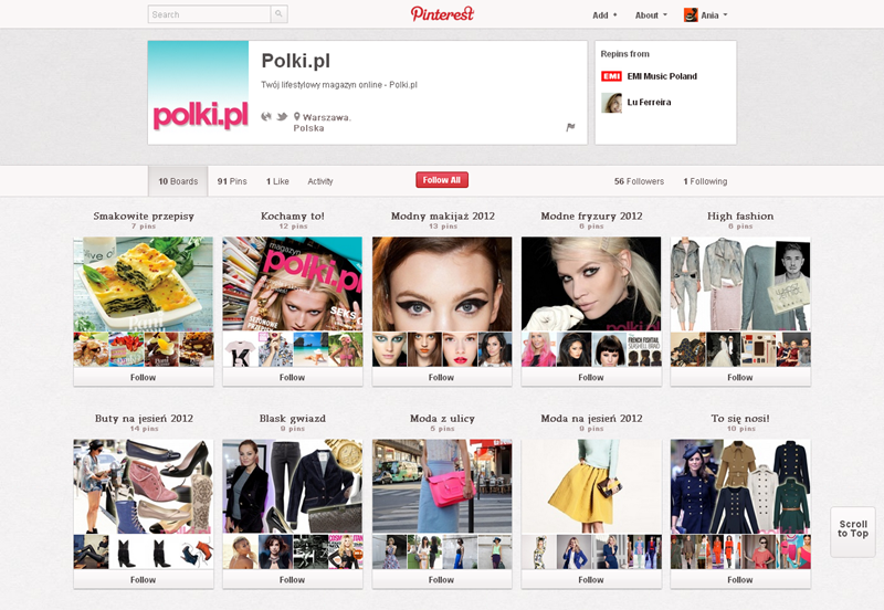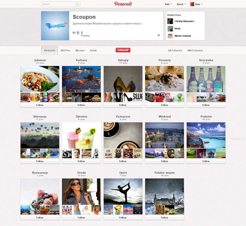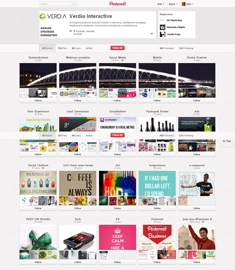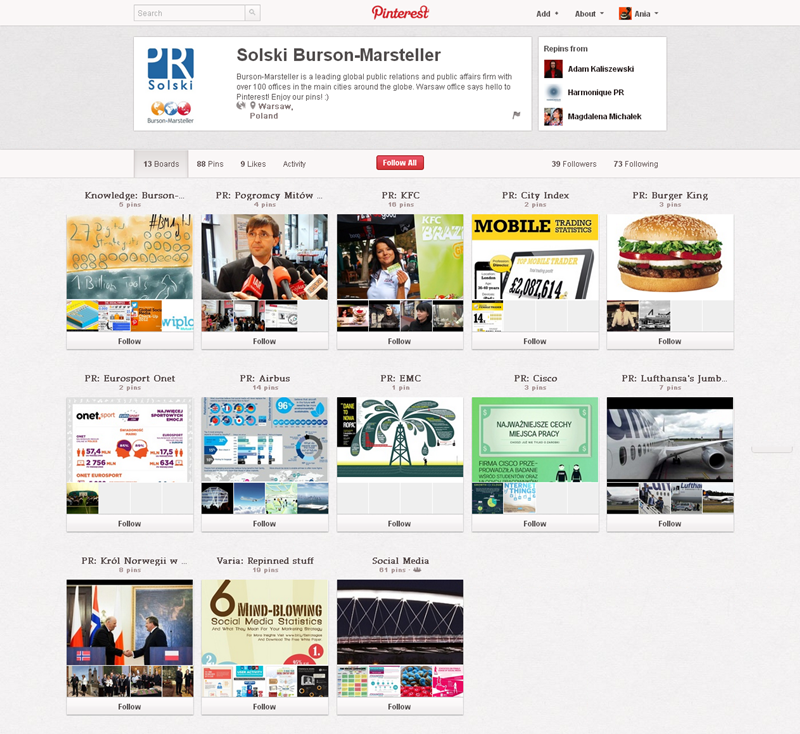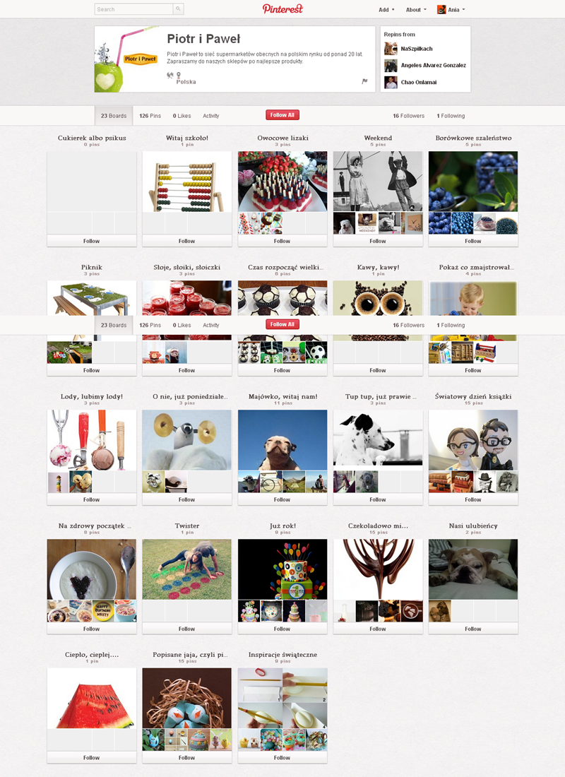 Jak obecnie wyglądają polskie firmowe profile na Pintereście? Znaleźliśmy prawie 300 stron – wszystkie obejrzeć można przeglądając tematyczne galerie.