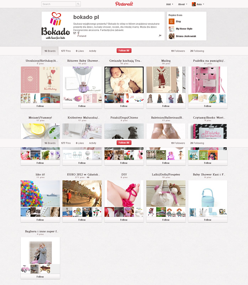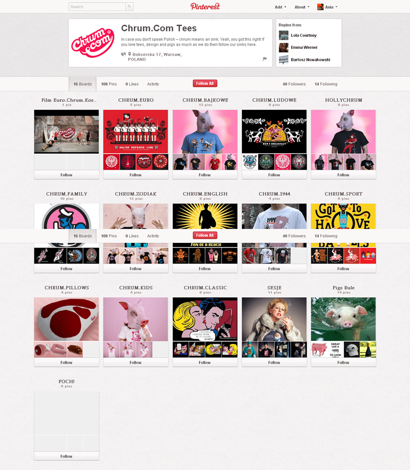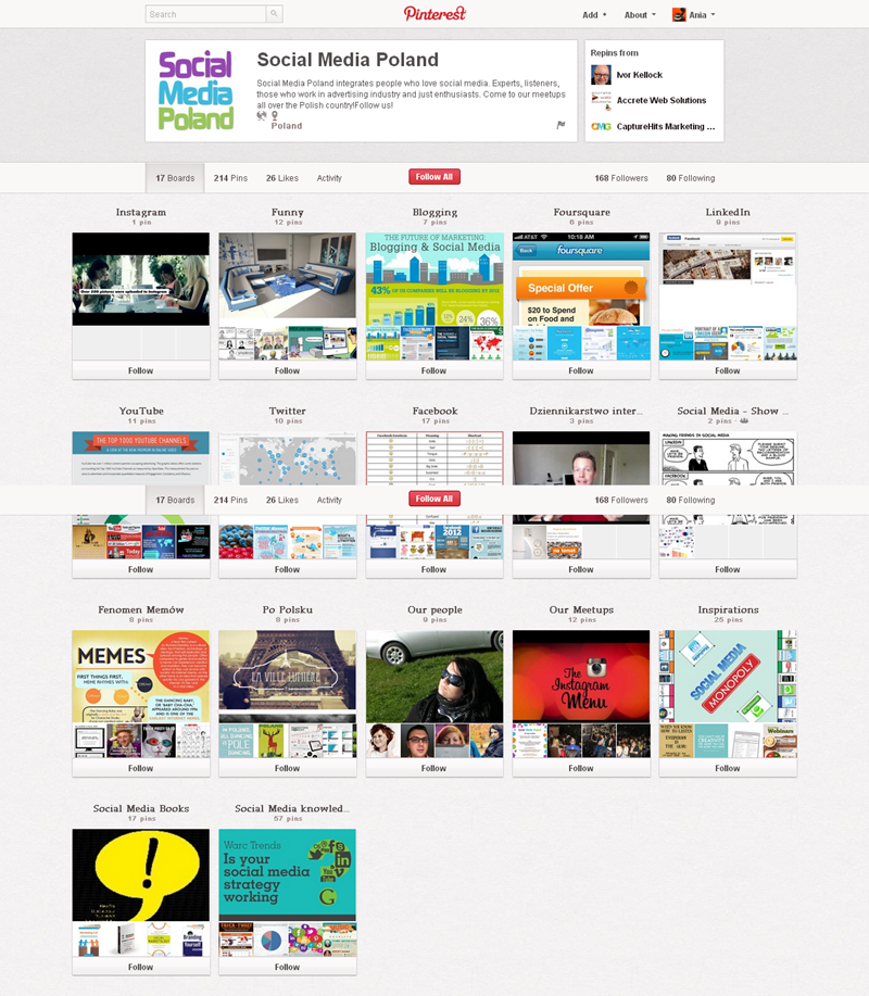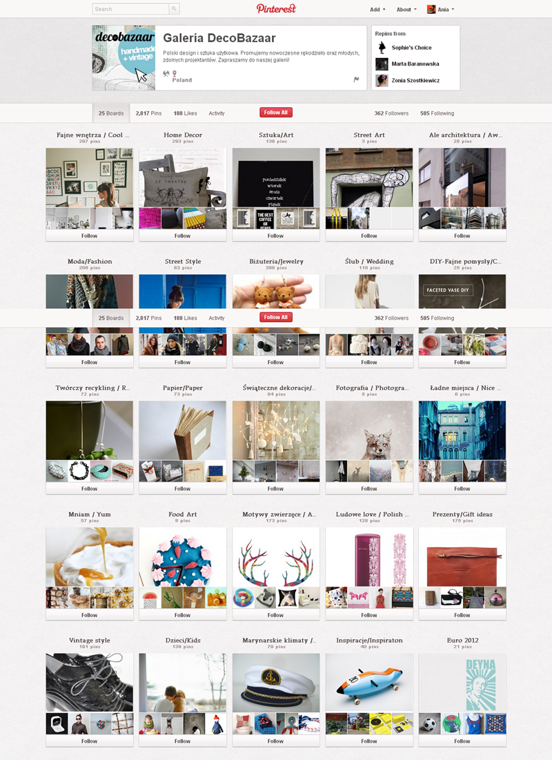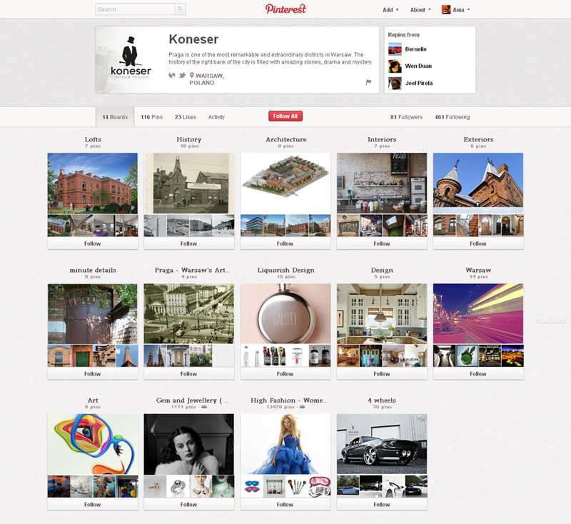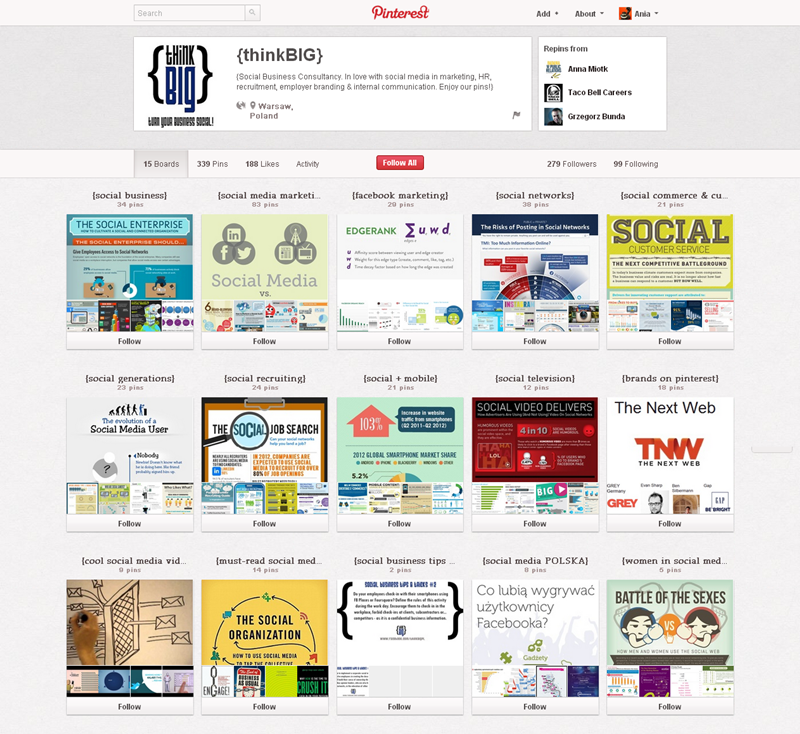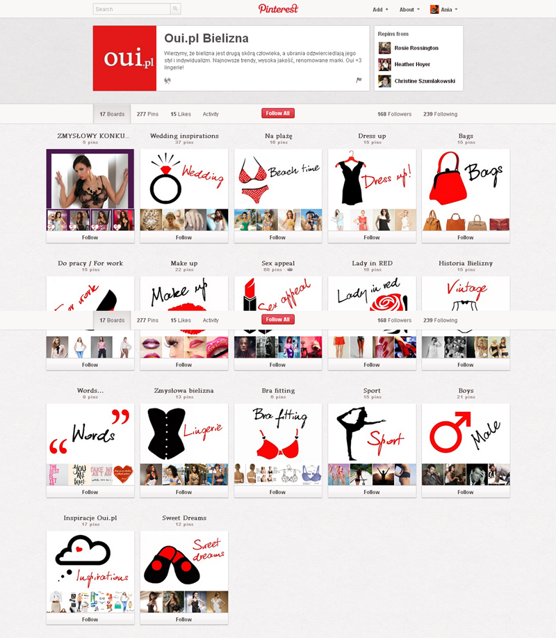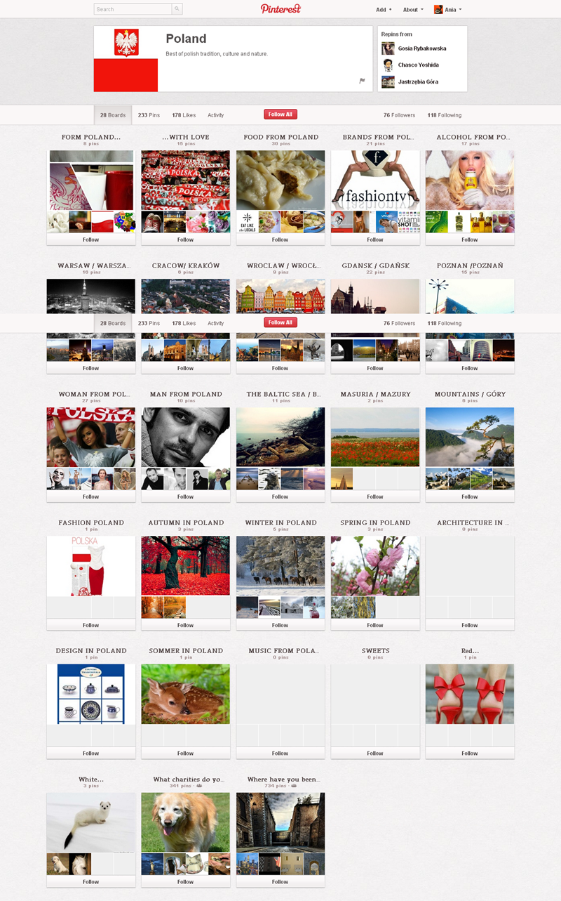 Jak obecnie wyglądają polskie firmowe profile na Pintereście? Znaleźliśmy prawie 300 stron – wszystkie obejrzeć można przeglądając tematyczne galerie.