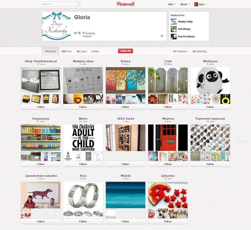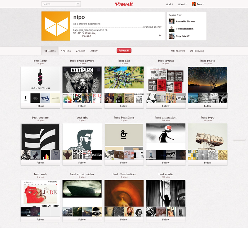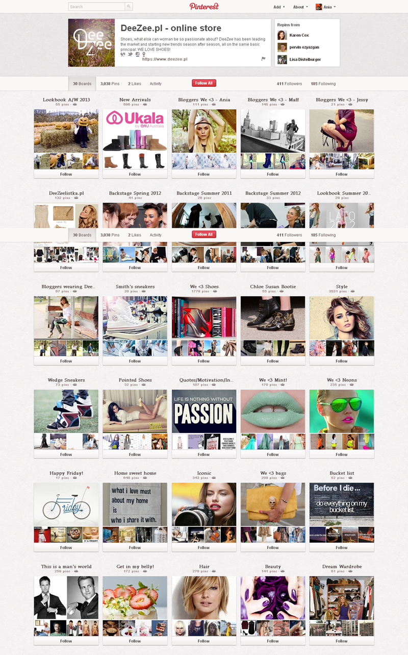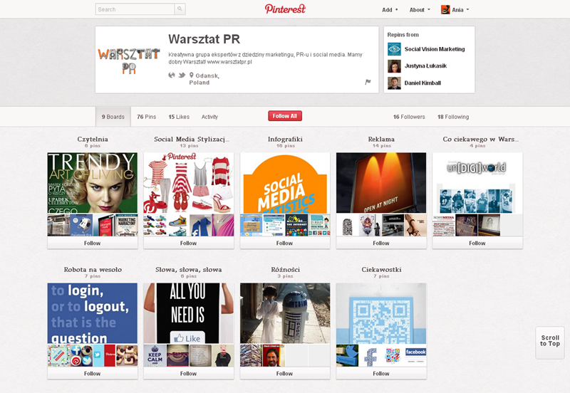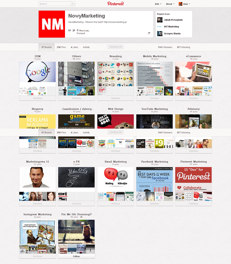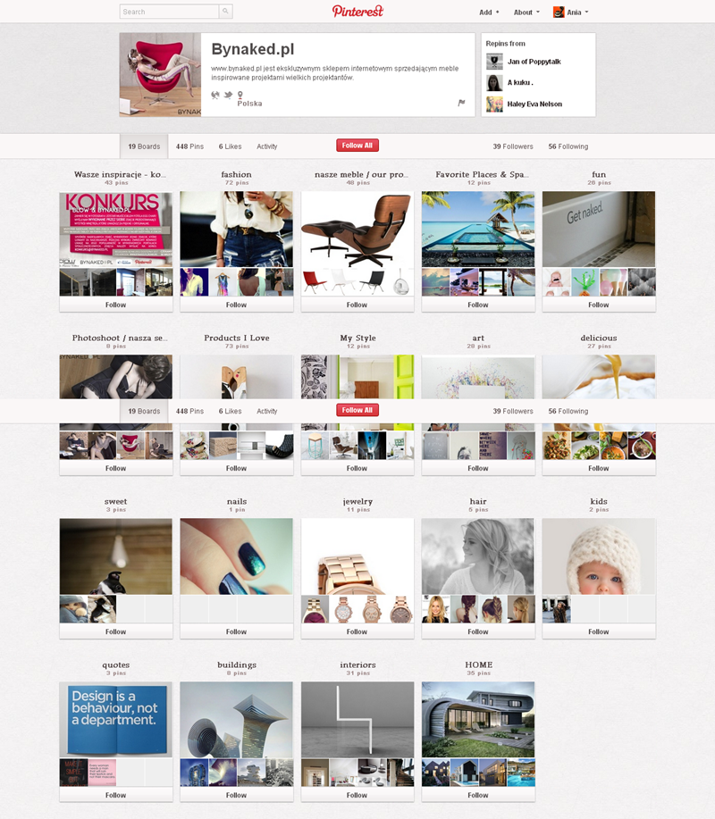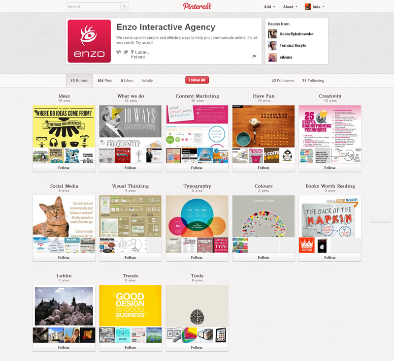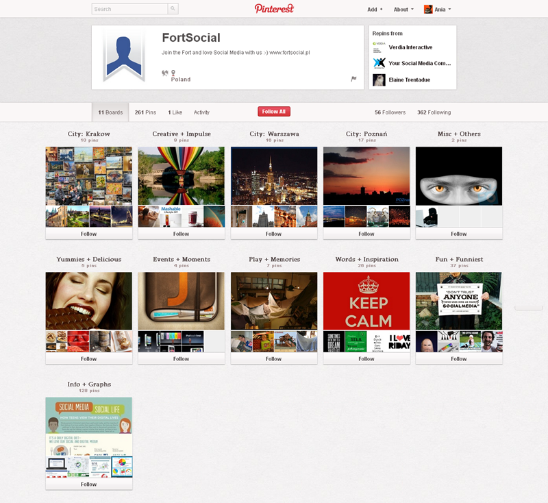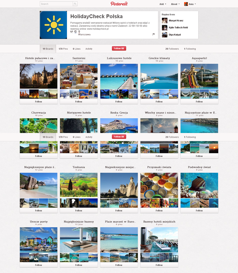 Jak obecnie wyglądają polskie firmowe profile na Pintereście? Znaleźliśmy prawie 300 stron – wszystkie obejrzeć można przeglądając tematyczne galerie.