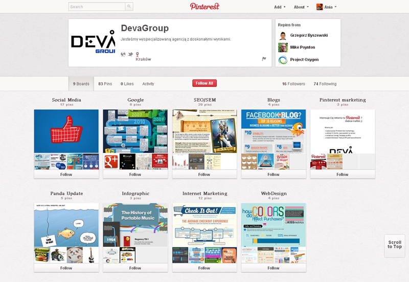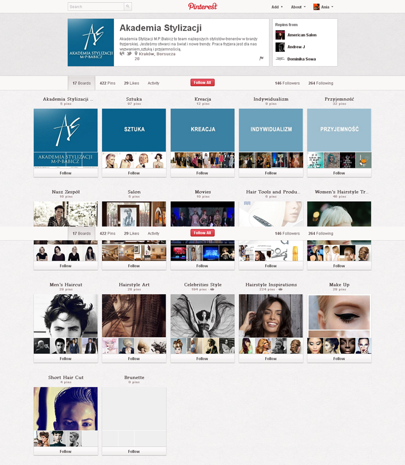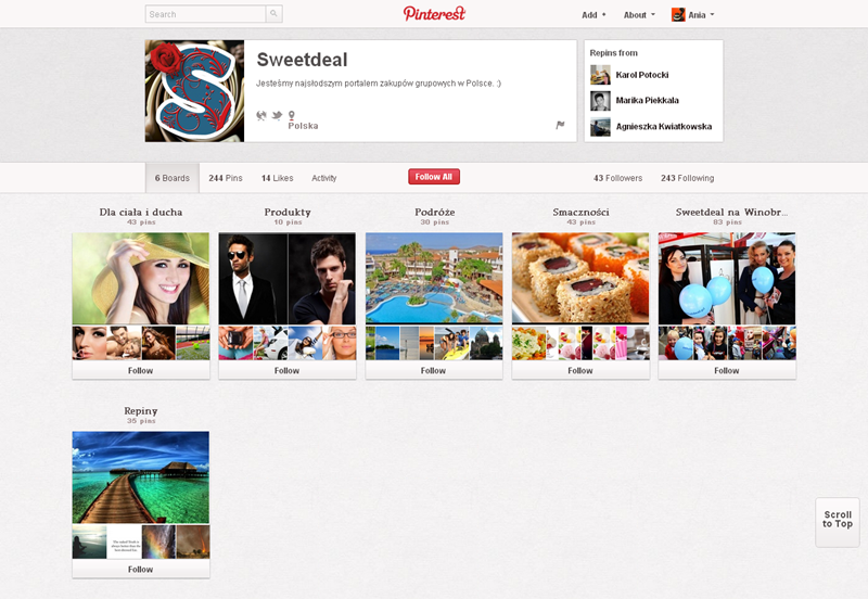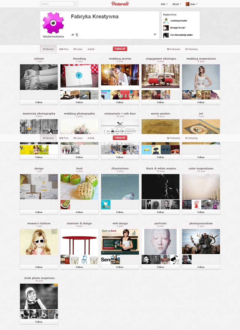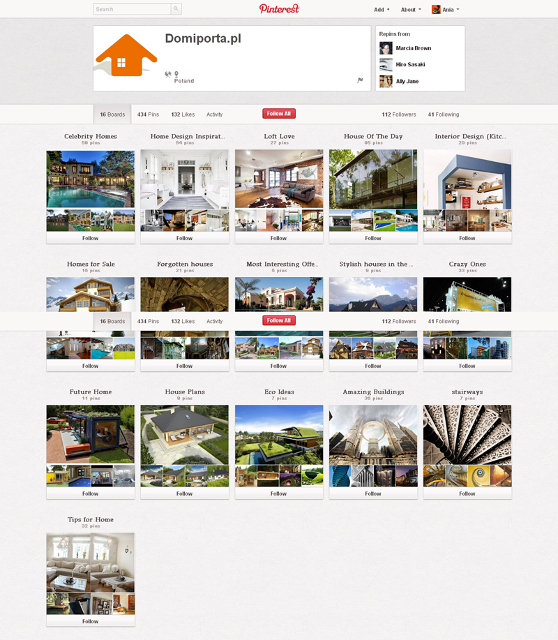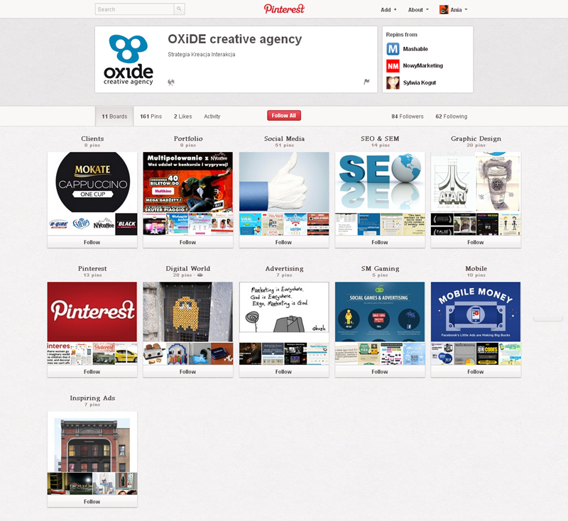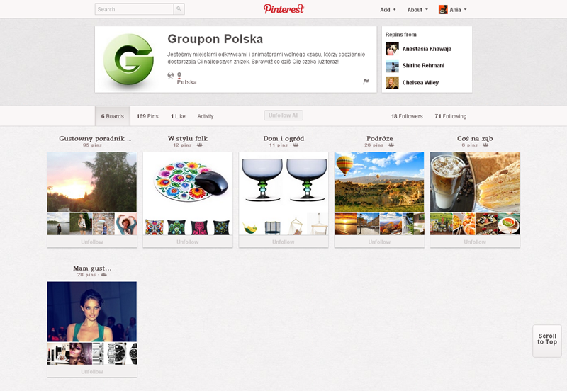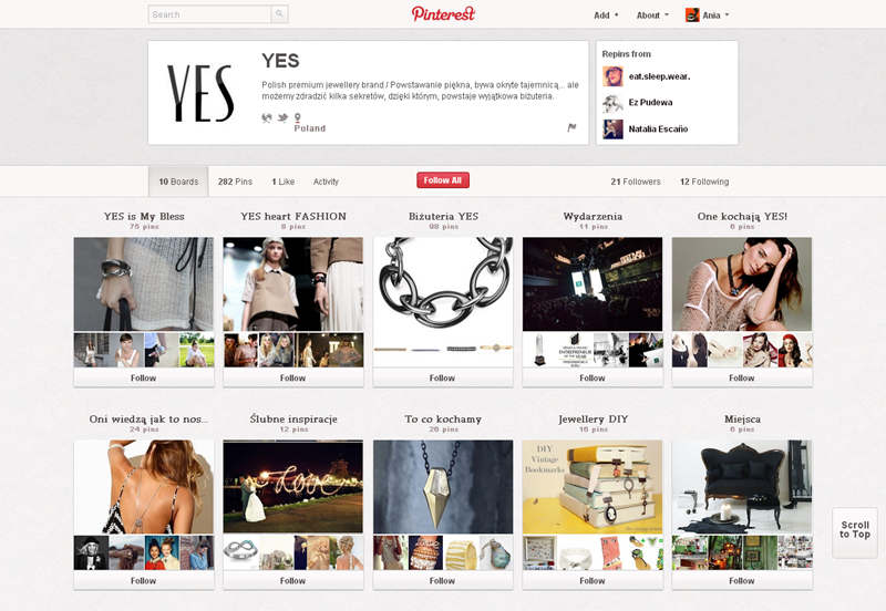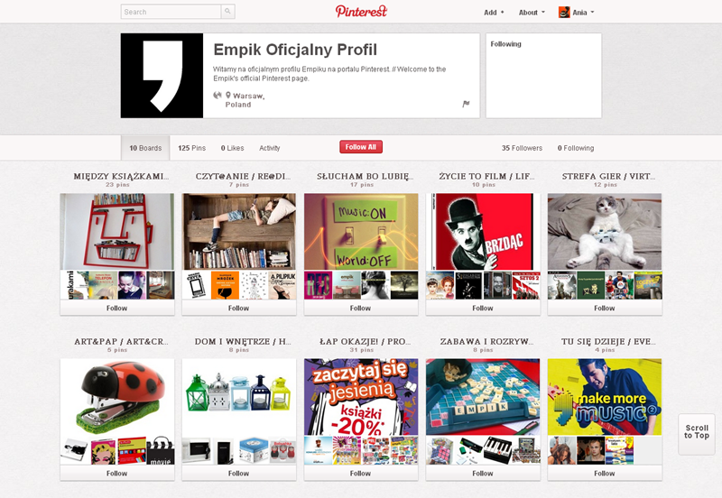 Jak obecnie wyglądają polskie firmowe profile na Pintereście? Znaleźliśmy prawie 300 stron – wszystkie obejrzeć można przeglądając tematyczne galerie.