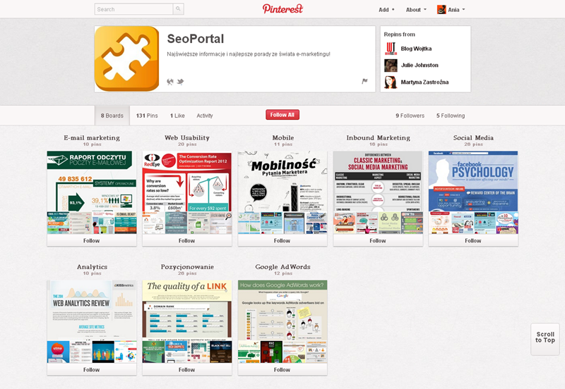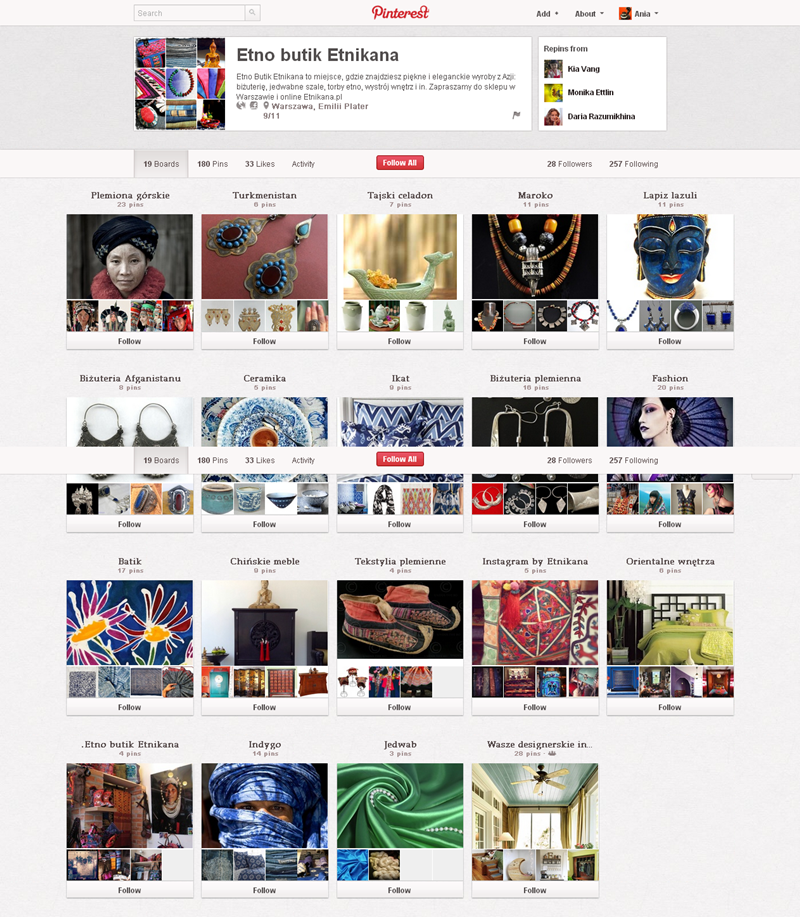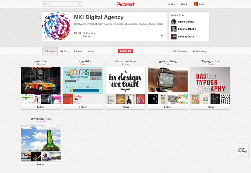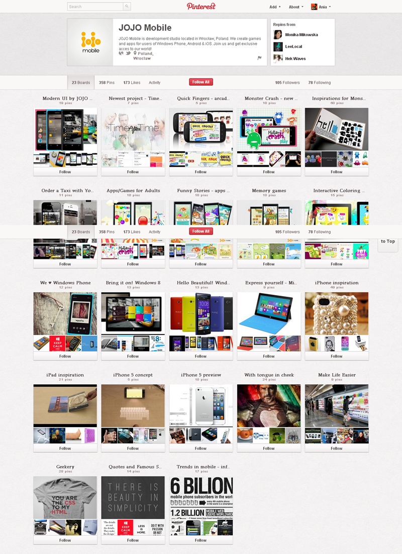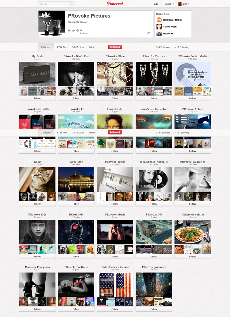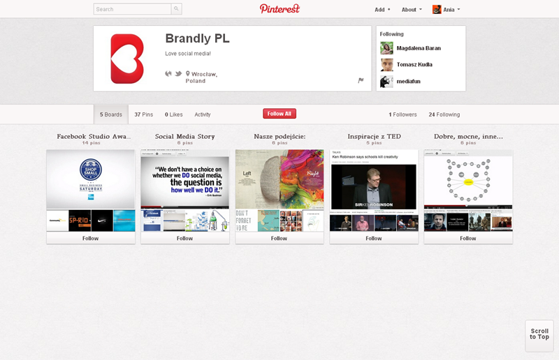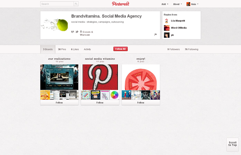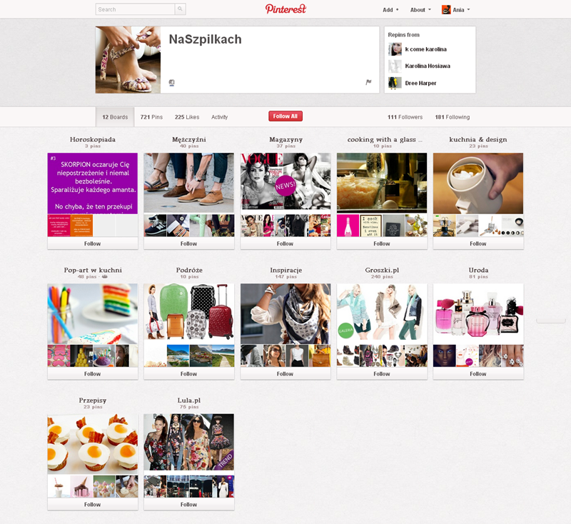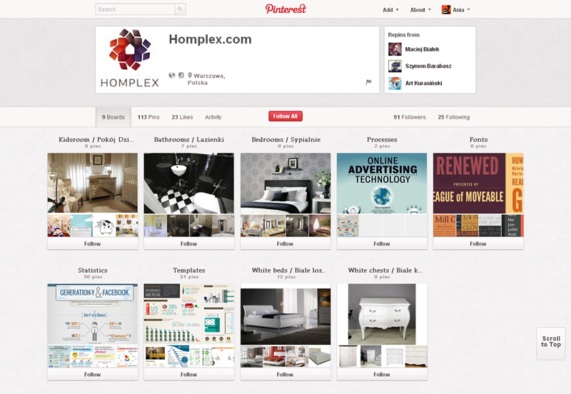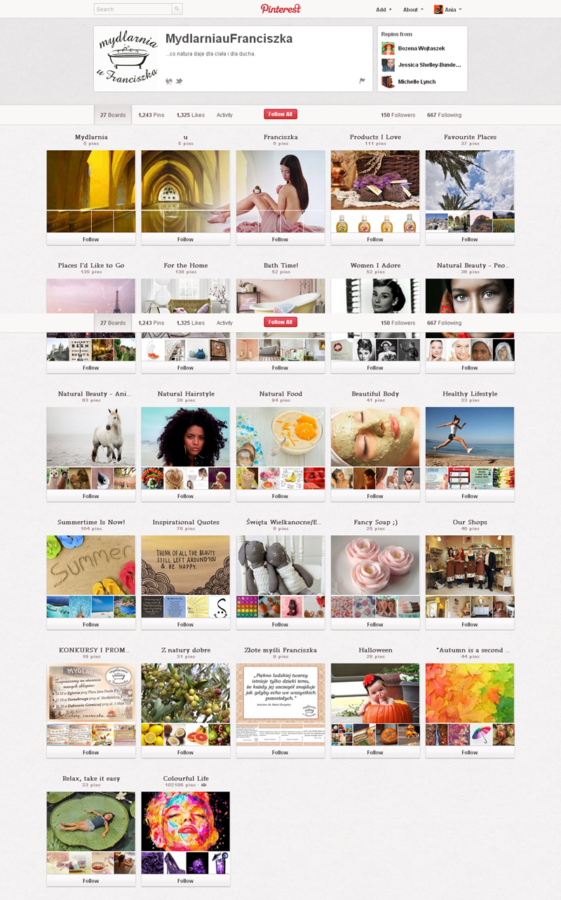 Jak obecnie wyglądają polskie firmowe profile na Pintereście? Znaleźliśmy prawie 300 stron – wszystkie obejrzeć można przeglądając tematyczne galerie.