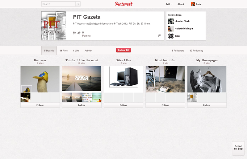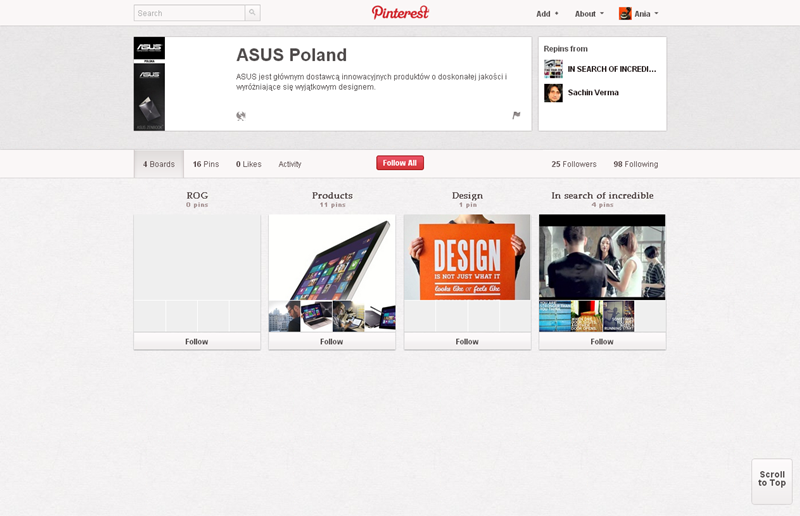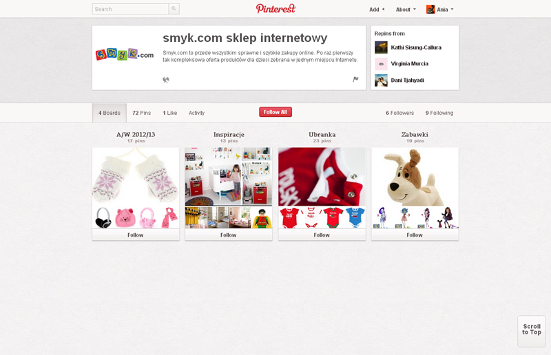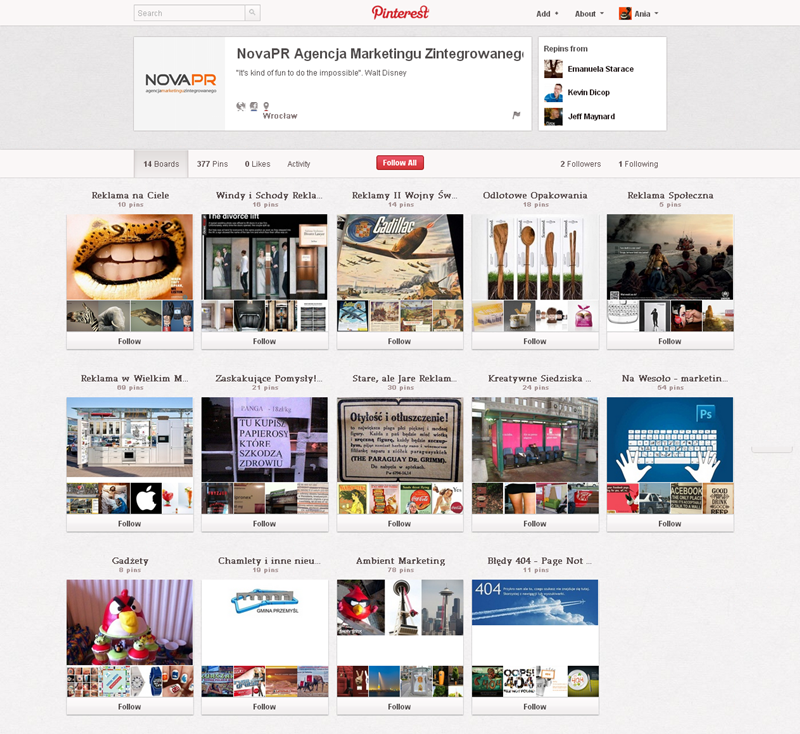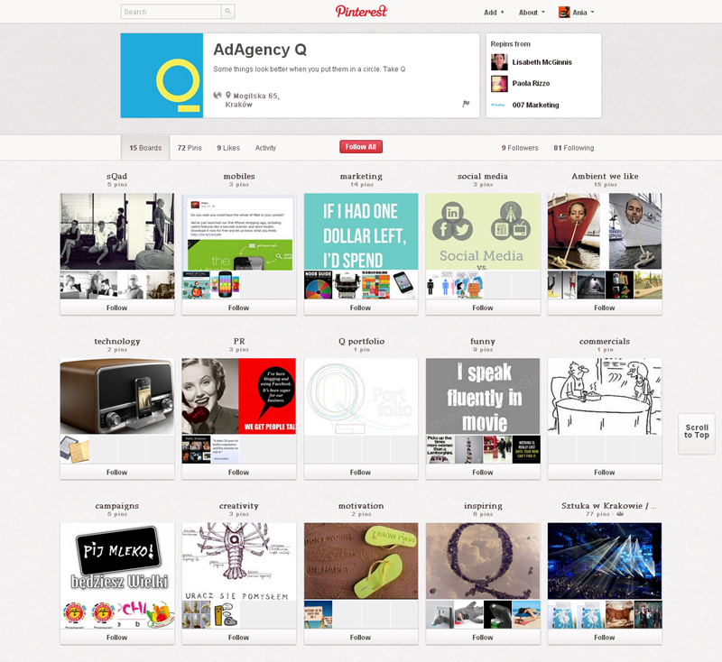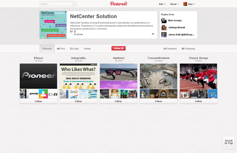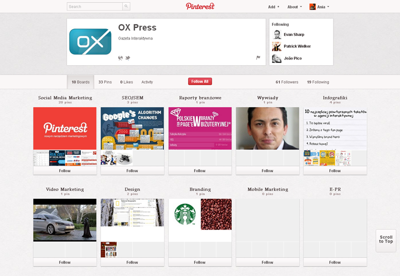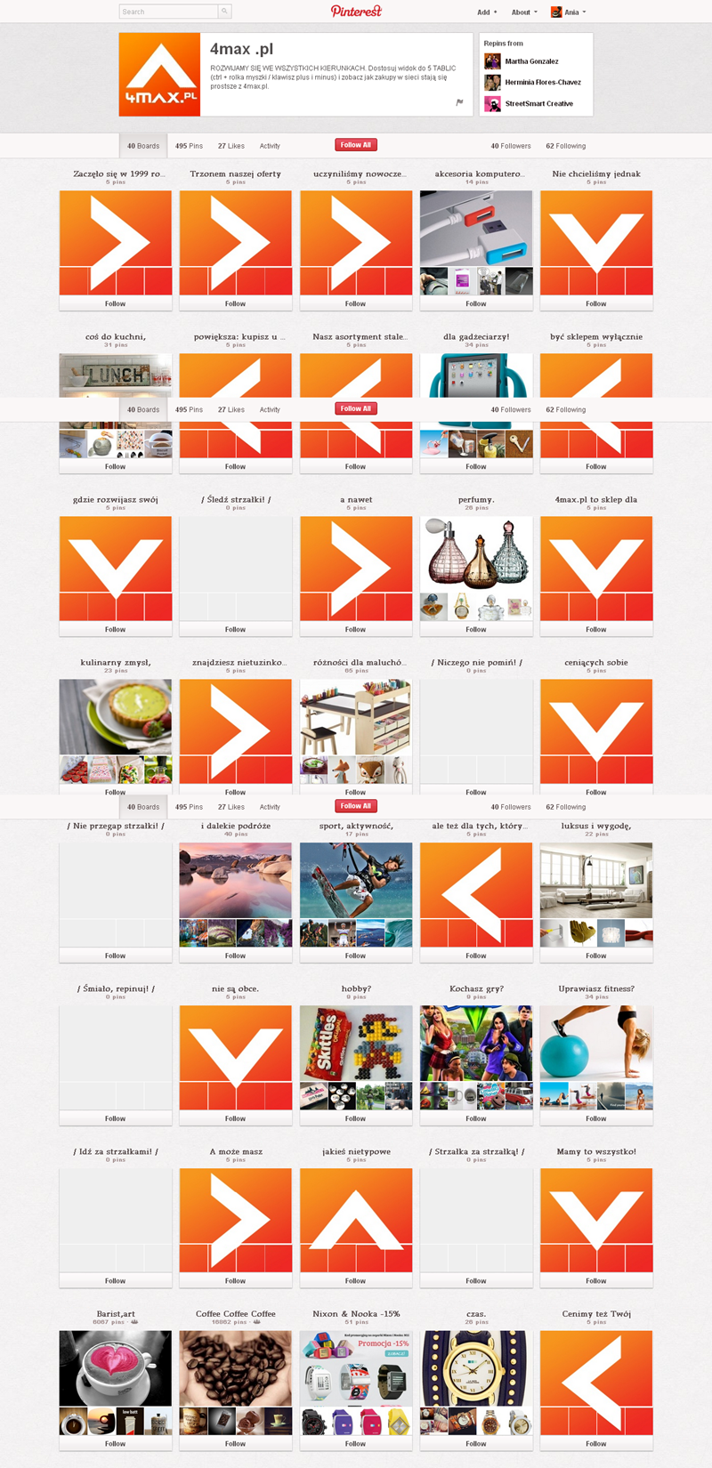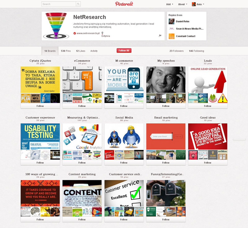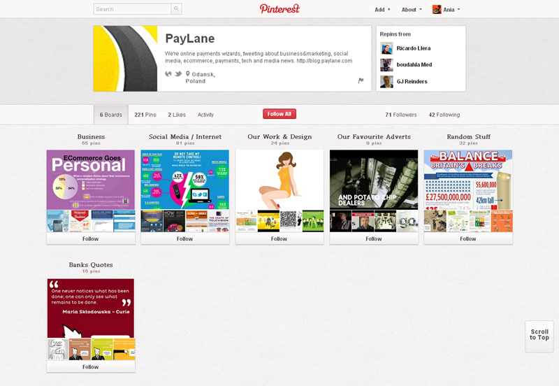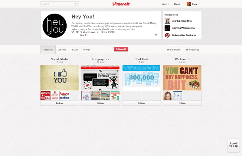 Jak obecnie wyglądają polskie firmowe profile na Pintereście? Znaleźliśmy prawie 300 stron – wszystkie obejrzeć można przeglądając tematyczne galerie.