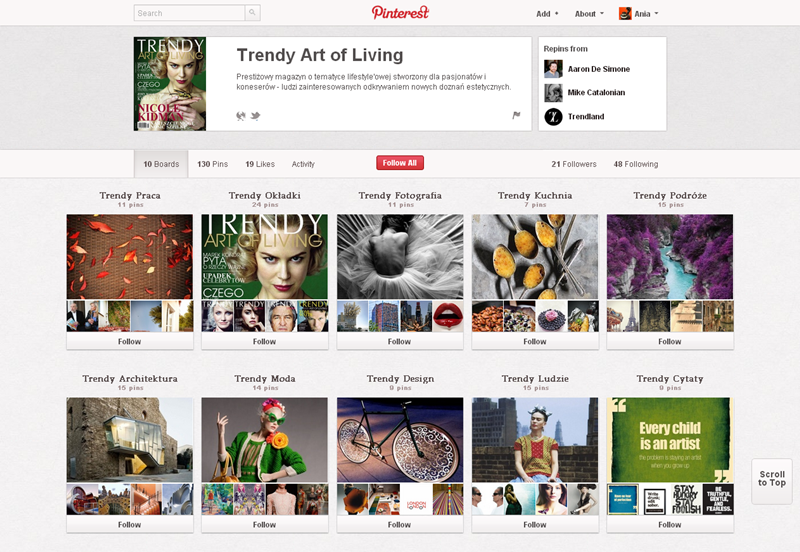 O tym, czy marki mają czego szukać na Pintereście pisaliśmy już w maju. W sierpniu i wrześniu przedstawiliśmy katalog polskich marek. Przedstawialiśmy także case study jednego z najpopularniejszych kont oraz wskazówki jak mierzyć działania komunikacyjne prowadzone w tym serwisie.