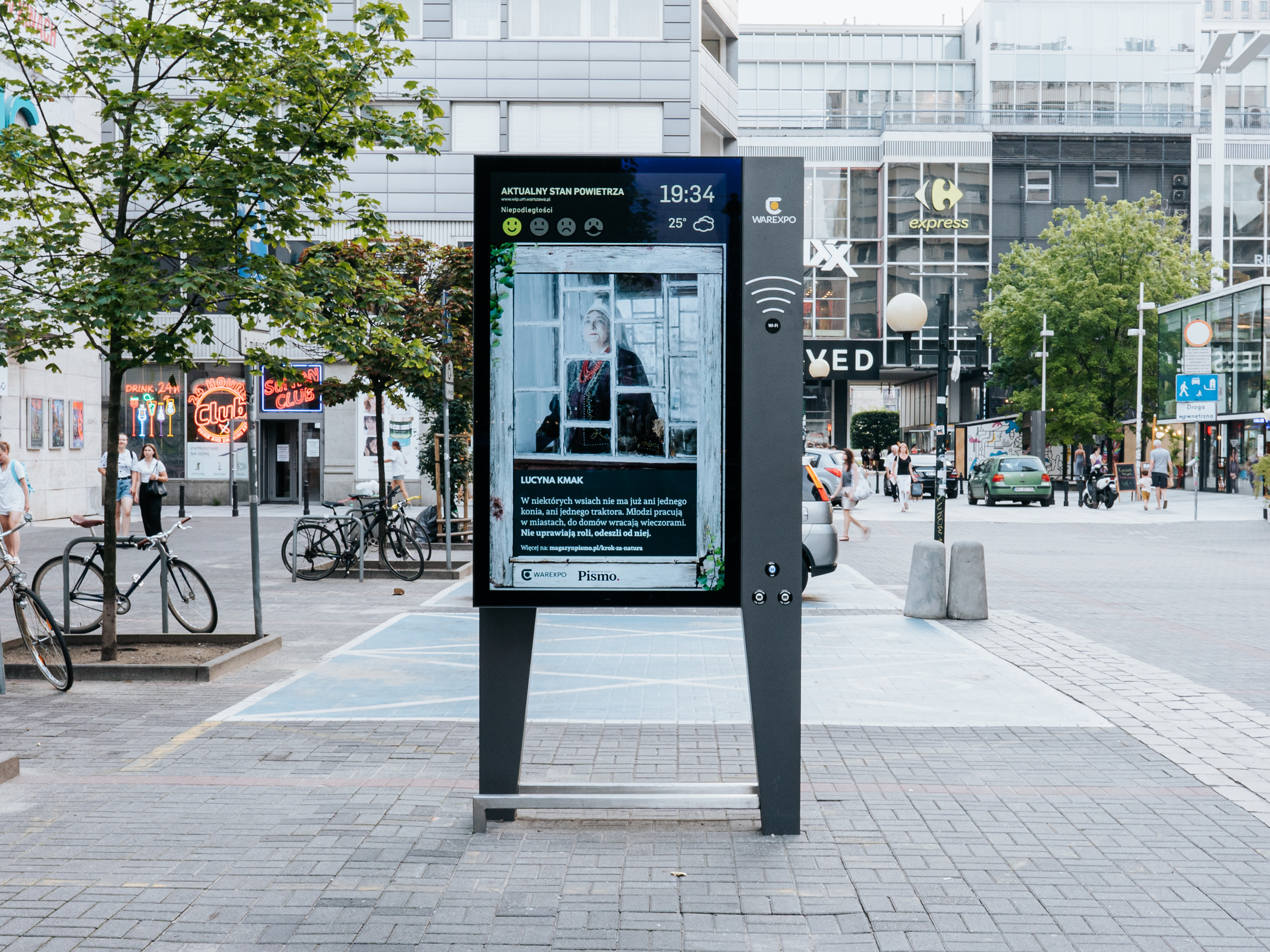 Portrety rozmówczyń można podziwiać na spektakularnych LED space Warexpo – ekranach w przejściu podziemnym pomiędzy I a II linią metra oraz na sieci nośników smart citylight na Krakowskim Przedmieściu i na ul. Chmielnej. Współpraca partnerska pomiędzy magazynem Pismo a Warexpo trwa od kilku lat. Pierwszą wspólną realizacją był cykl reportaży Filipa Springera.